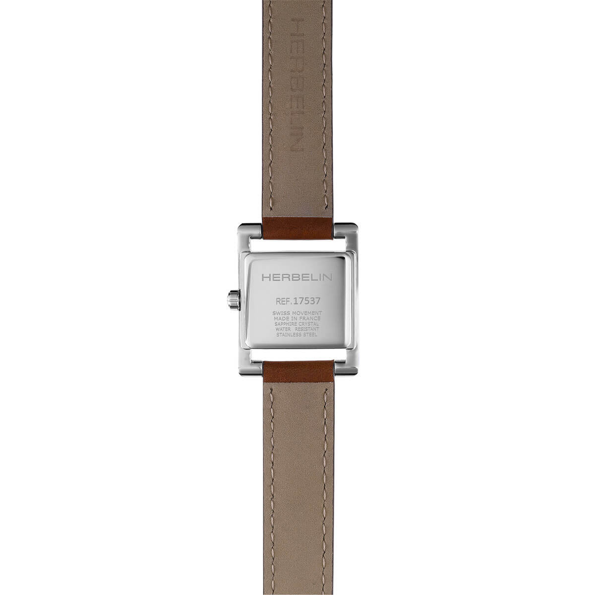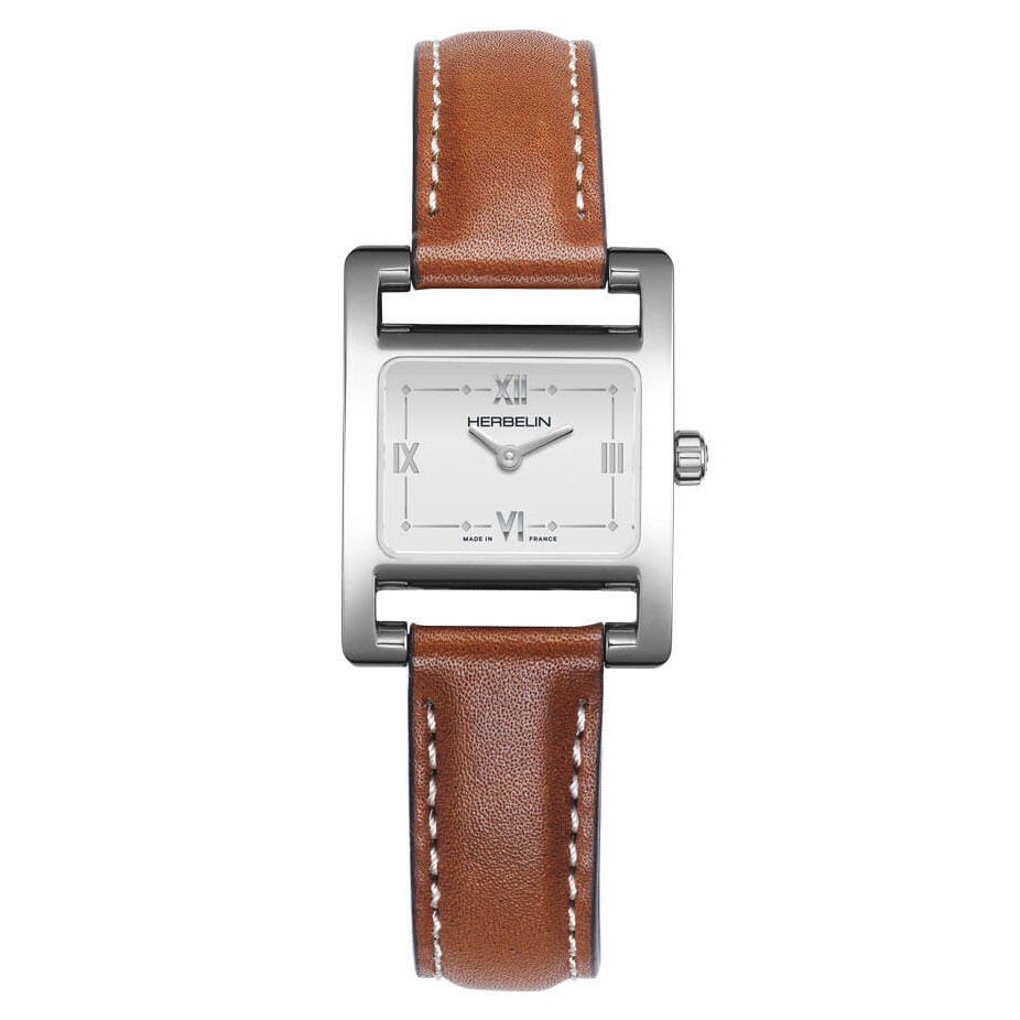 Koperta zegarka w rozmiarze 23.40 x 19 mm wykonana jest z solidnej stali szlachetnej w kolorze srebrnym. Stal nadaje mu wyjątkowy połysk i odporność na różnego rodzaju korozje. Prostokątny kształt dodaje unikatowego charakteru i wyróżnia go spośród innych modeli. Rewers obudowy to stalowy dekiel, który zamyka całą konstrukcję. Zestawiony z czasomierzem Herbelin pasek ze skóry naturalnej w subtelnym brązowym kolorze zapewnia nie tylko elegancki wygląd, ale także wygodę noszenia. Jego miękki i lekki materiał sprawia, że czasomierz Herbelin w przyjemny sposób układa się na nadgarstku.