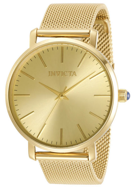 Twórcy zegarków z zespołu INVICTY prezentują kolejną, niesamowitą odsłonę eterycznego "Anioła" w pełni pozłacanym wariancie. Czasomierz wyśmienicie odnajdujący się w roli tak wskaźnika czasu, jak drogocennej biżuterii. Dzięki swej klasycznej, nieziemskiej fasadzie wkracza na wyższą płaszczyznę czasu w dobrym guście. Zgodnie z planem zegarek jest w całości pozłacany, dzięki czemu wpasuje się w każdą stylizację niezależnie od bogactwa jej barw.