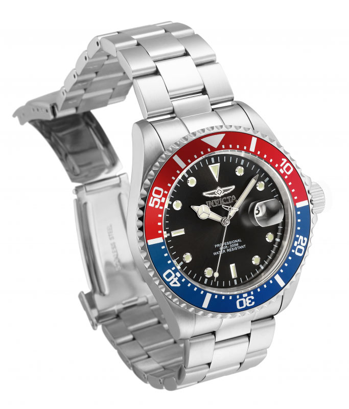 Zegarek męski Invicta Pro Diver 23384 to czasomierz prezentujący sobą kwintesencję sportowego stylu, potęgi oraz wydajności. Przypadnie do gustu przede wszystkim zawodowym nurkom dzięki swemu głębinowemu zastosowaniu z klasą wodoszczelności do 200 metrów. To doskonały kompan do zanurzenia w horyzoncie, ale również do miejskich aktywności. Swój sportowy charakter zawdzięcza projektowi łączącemu barwy czerwieni, czerni oraz niebieskiego, które każdemu kojarzą się z szybkością, ekstremalnością i sportem. Ta silna kompozycja ucieleśnia także realną moc czasomierza, na którą składa się wykonanie koperty oraz bransolety ze stali szlachetnej, zakręcana forma koronki i dekla oraz kwarcowy mechanizm o precyzyjnej skuteczności.