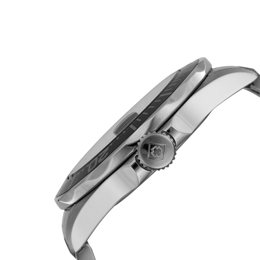 Stal szlachetna jest odporna na korozję i świetnie znosi codzienne użytkowanie. Koronka typu push pracuje pewnie, a masywne ogniwa bransolety oraz zapięcie zapewniają stabilne trzymanie na nadgarstku. Całość to sprawdzona recepta: styl inspirowany zegarkami nurkowymi, wytrzymałe materiały i napęd, który po prostu działa.