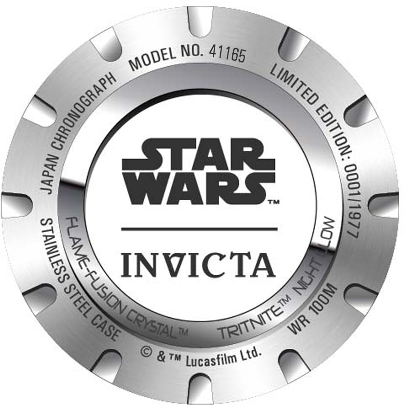 Męski zegarek Invicta Star Wars Darth Vader 41165 to propozycja dla prawdziwych fanów sagi Gwiezdnych Wojen a przede wszystkim postaci Lorda Vadera. Limitowany czasomierz Invicta Star Wars Darth Vader wyprodukowany został w 1977 egzemplarzach, co czyni go wartościowym modelem dla kolekcjonerów — dekiel zegarka został ozdobiony grawerem limitacji oraz logotypem Star Wars.