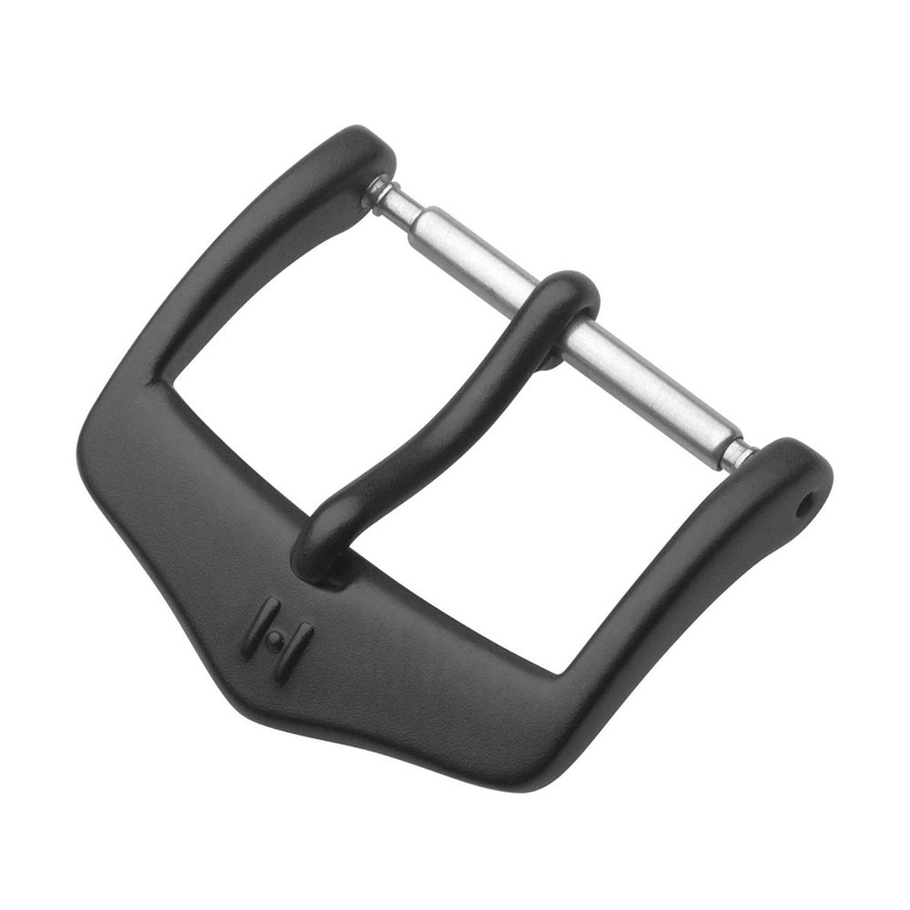 Stalowa klamerka w kolorze czarnym, matowym dedykowana do pasków Hirsch. Dostępna w rozmiarach 18, 20 lub 22 mm — jest to szerokość w miejscu, gdzie jest montowana do paska. Klasyczny kształt idealnie pasuje do eleganckich i klasycznych pasków do zegarka. Przed złożeniem zamówienia proszę wybrać odpowiednią szerokość klamerki.
