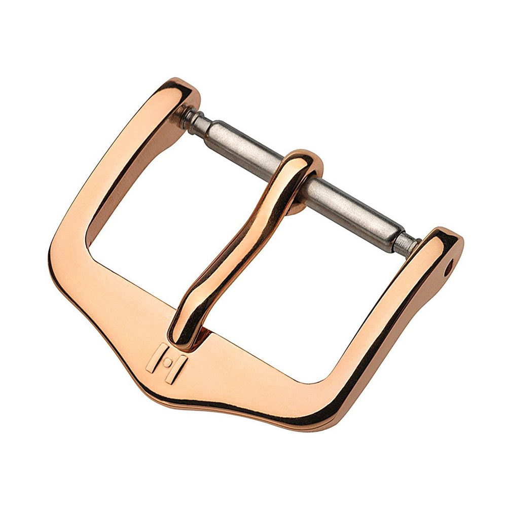 Stalowa klamerka w kolorze różowego złota dedykowana do pasków Hirsch. Dostępna w rozmiarach 10, 12, 14, 16, 18, 20 lub 22 mm — jest to szerokość w miejscu, gdzie jest montowana do paska. Tradycyjny kształt idealnie pasuje do eleganckich i klasycznych pasków do zegarka. Przed złożeniem zamówienia proszę wybrać odpowiednią szerokość klamerki.