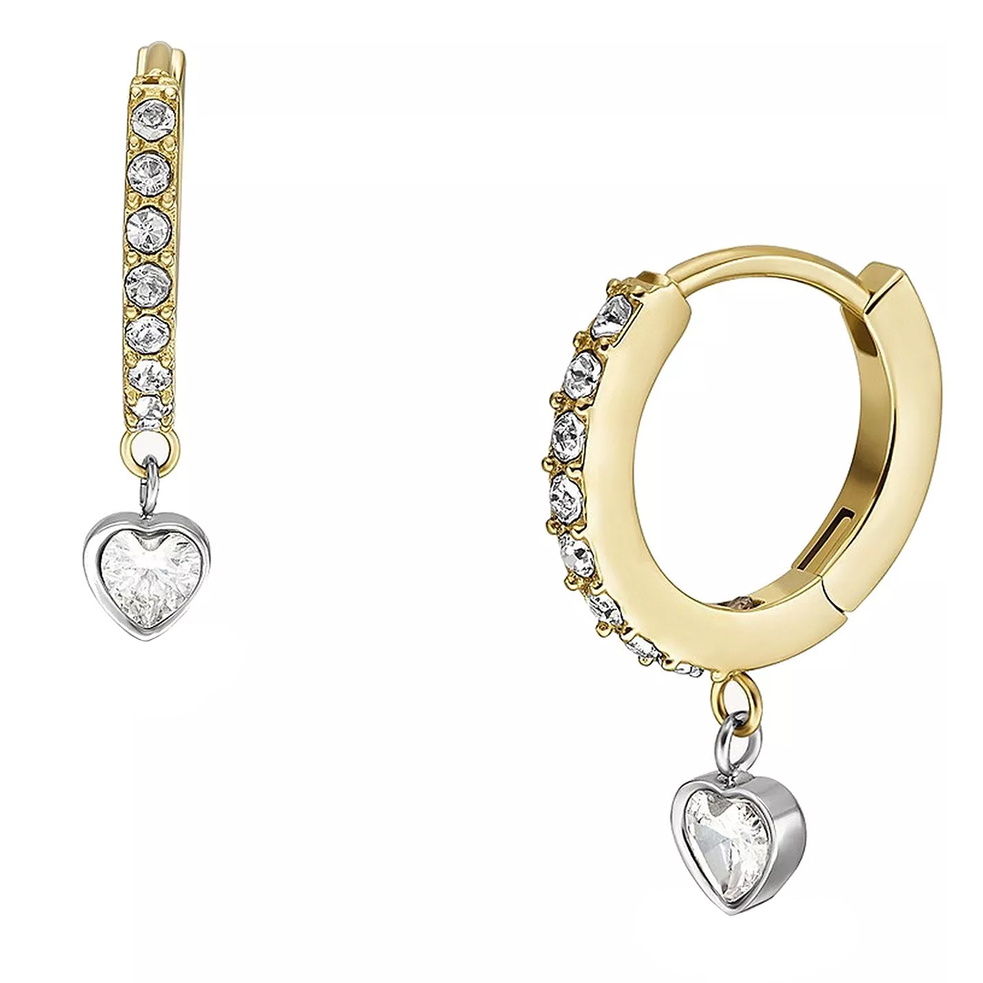 Kolczyki Fossil Sadie JF04358998 to eleganckie kółka wysadzane cyrkoniami, z kryształową zawieszką w formie serca. Wykonane są z pozłacanej stali nierdzewnej, co zapewnia odporność na codzienne zużycie. Zapięcie w formie obręczy "hoops" gwarantuje wygodę noszenia i solidne trzymanie. Kolczyki mają długość 18,6 mm i szerokość 4 mm, co oznacza, że są subtelne, a zarazem wyraziste.