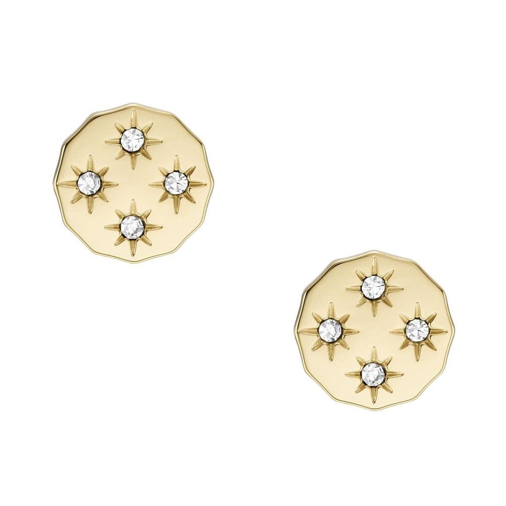 Pozłacane, okrągłe kolczyki z cyrkoniami Fossil Sutton to doskonały pomysł na prezent dla Niej, a także świetne uzupełnienie podstawowej kolekcji.