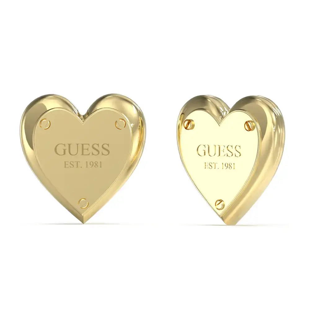 Pozłacane kolczyki wkrętki serca ze stali Guess All You Need Is Love JUBE04209JWYGT/U to odważne odejście od klasycznego stylu glamour na rzecz estetyki industrial-chic.