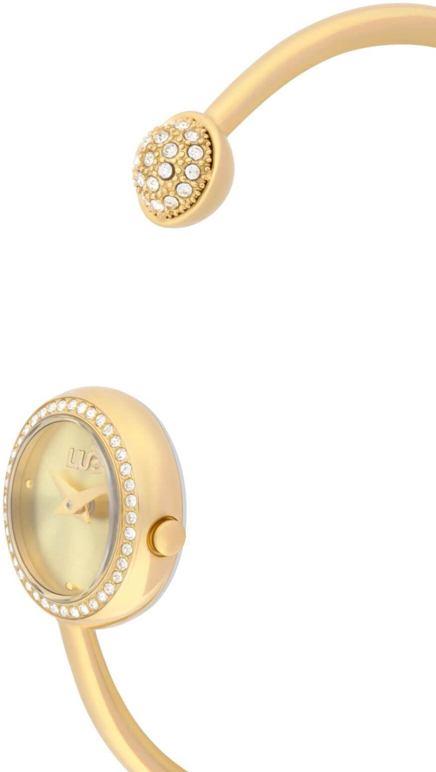 Pozłacany zegarek damski Liu Jo to biżuteryjny, modny dodatek z cyrkoniami i efektowną bransoletą, stworzony dla kobiet kochających styl i blask.