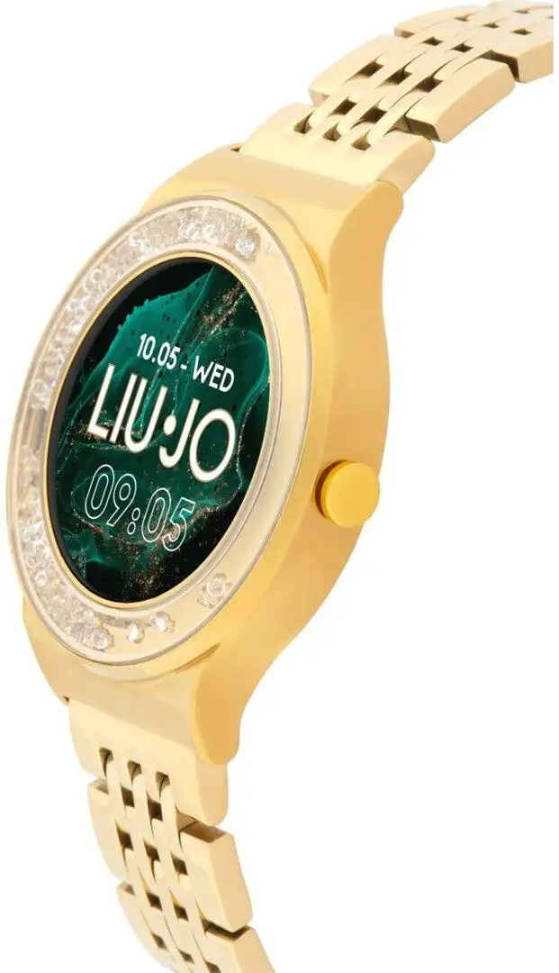 Liu Jo Smartwatch Voice Dancing SWLJ206 wyposażono w dotykowy ekran IPS przykryty szkłem hesalitowym oraz kopertę w kolorze złotym ozdobioną cyrkoniami, które dodają modelowi biżuteryjnego charakteru. Zegarek połączono z pozłacaną bransoletą o klasycznym splocie, zapinaną na bezpieczne zapięcie motylkowe. System umożliwia personalizację tarczy, dostosowanie wyglądu smartwatcha do stylu użytkowniczki oraz szybki dostęp do wszystkich funkcji zdrowotnych i sportowych.