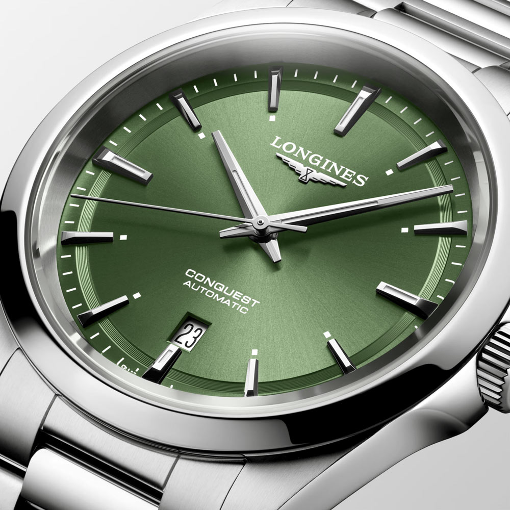 Pod tarczą ukrywa się mechanizm automatyczny specjalnie stworzony dla marki Longines — kaliber L888. Wyjątkowy mechanizm posiada antymagnetyczny krzemowy wychwyt balansu, dzięki któremu zegarek jest chroniony przed polami magnetycznymi, które utrudniać mogą pracę mechanizmu. Kaliber L888 zapewnia rezerwę chodu do 72 godzin, która pozwala na przerwę w użytkowaniu czasomierza bez obawy o zatrzymanie jego pracy. Zegarek Longines Conquest 2023 to propozycja sportowo-eleganckiego czasomierza dla Panów szukających prostych linii i tradycji zegarmistrzowskich. Modna srebrno-zielona kolorystyka dopasuje się do różnego rodzaju dodatków biżuteryjnych, eleganckich butów czy paska od spodni. Longines L3.830.4.62.6 będzie idealnym partnerem na spotkaniach biznesowych jak i tych mniej formalnych.