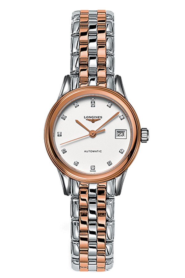 Zegarek damski Longines Flagship Lady Automatic L4.274.3.99.7 z kolekcji eleganckich zegarków Les Grandes Classiques de Longines. Okrągła koperta z przeszklonym deklem a w środku pracuje mechanizm automatyczny. Ten klasyczny zegarek dla pań zachwyca nie tylko designem z zewnątrz, ale ukrytym pięknem wewnątrz. Misternie wykonany mechanizm a z przodu elegancka tarcza z diamentami. Całości dopełnia bardzo wygodna w noszeniu bransoleta ze stali szlachetnej.