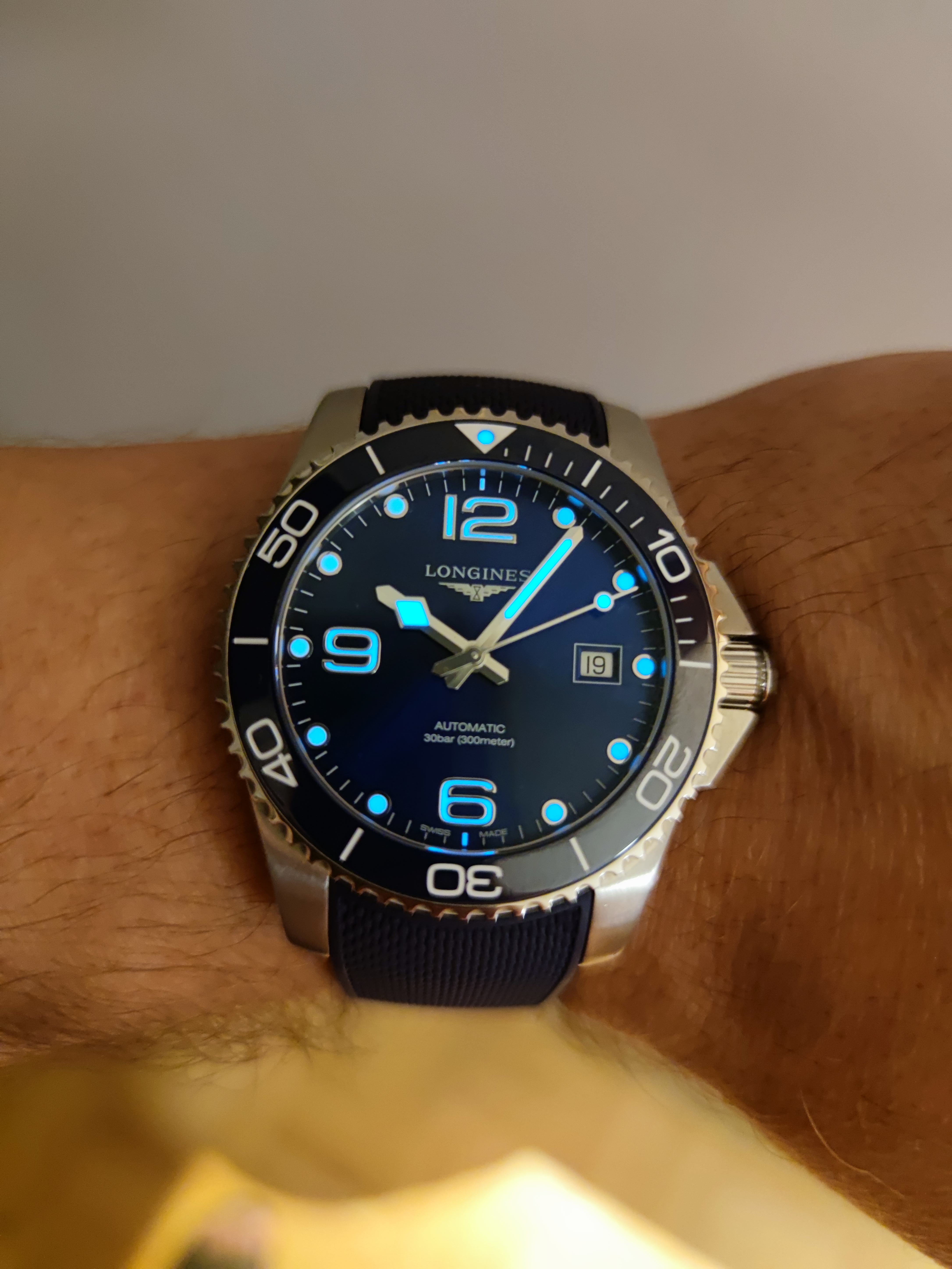 Longines HydroConquest Automatic L3.781.4.96.9 wersja o średnicy koperty 41 mm. Model zawierający wszystkie cechy estetyczne prawdziwego zegarka nurkowego. Zegarek Longines opracowany w celu utrwalenia zdolności marki Longines do produkcji czasomierzy dla wymagających sportowców. Solidna i niezawodna konstrukcja zegarka nurkowego, koperta wykonana ze stali szlachetnej, która jest odporna na korozję. Obrotowy bezel z ceramiczną wkładką w kolorze niebieskim tak samo jak wskazówki i indeksy, jest bardzo wyraźny, co jest bardzo ważne podczas nurkowania. Substancja luminescencyjna bardzo mocno świeci w ciemności. Zegarek posiada zakręcany dekiel i koronkę, które uszczelniają go do klasy szczelności 30 bar. Longines HydroConquest Automatic łączy w sobie ponadczasowy urok z najnowszą technologią. Wydajność i elegancja. Wygodny w noszeniu pasek gumowy posiada zamek z możliwością szybkiego poszerzenia na skafander do nurkowania.