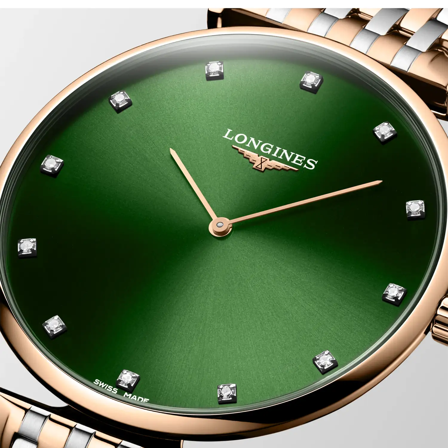 Zegarek z diamentami Longines La Grande Classique L4.866.1.08.7 w wersji dwukolorowej z zieloną tarczą to kwarcowy zegarek męski Longines dla tych, którzy szukają luksusu wyrażonego przez detal, a nie przesadę. Wyróżnia się ultracienką sylwetką, elegancką bransoletą typu bicolor i 12 diamentami na tarczy - to model, który nie potrzebuje komplikacji, by przyciągać uwagę. Został stworzony z myślą o osobach ceniących lekkość formy, ponadczasową klasę i szwajcarską precyzję w codziennym wydaniu.