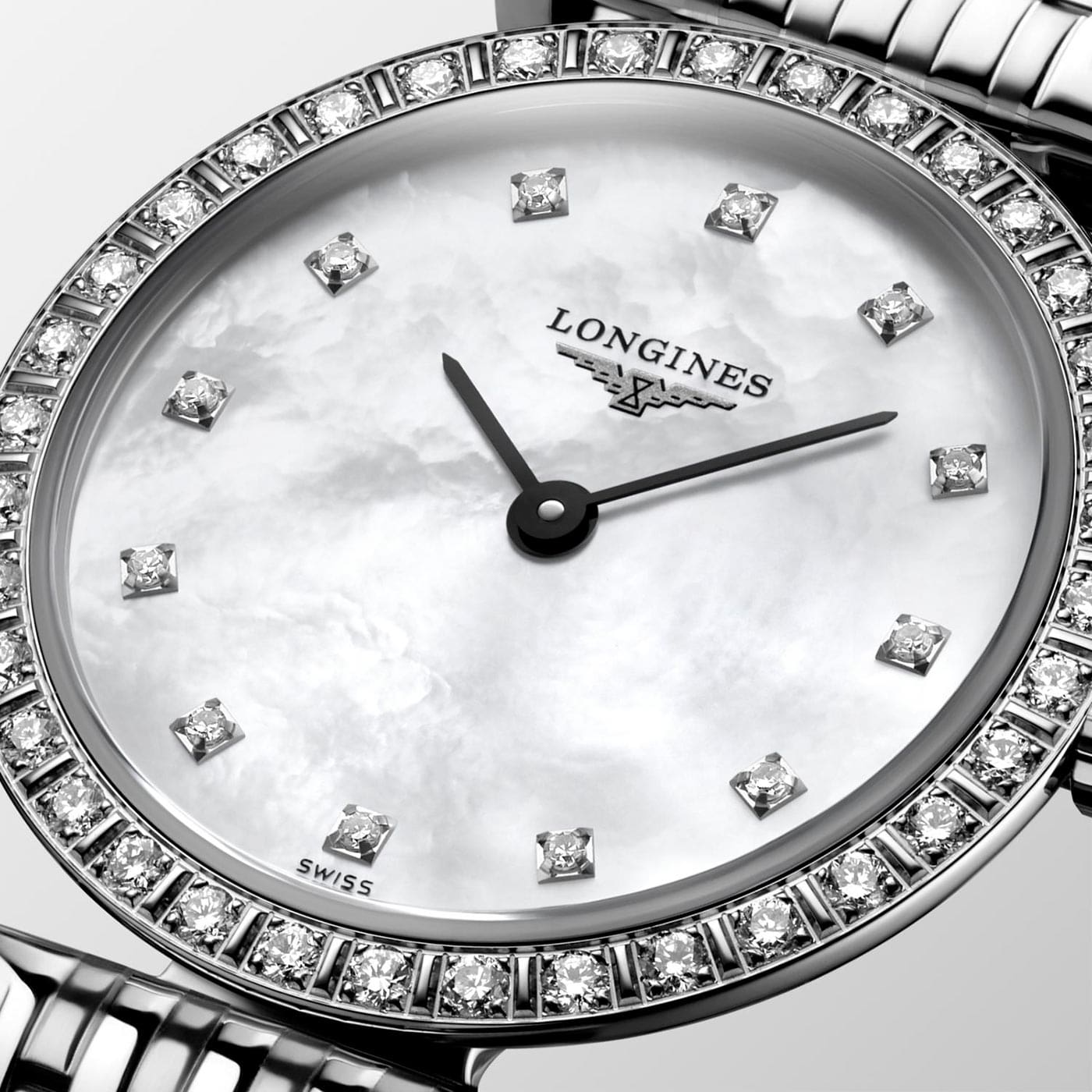 Niezwykle płaska i lekka koperta o drobnej średnicy 24 mm wykonana jest z odpornej na zarysowania i korozję stali szlachetnej o polerowanym wykończeniu. Wyraźnie wyodrębniona bransoleta wykonana z tego samego szlachetnego materiału ma wiele rzędów, zapewniając wygodę noszenia tego eleganckiego zegarka. Szkło szafirowe zapewnia doskonałą ochronę przed zarysowaniami, zachowując jednocześnie idealną przejrzystość. Wewnątrz obudowy znajduje się niezawodny mechanizm kwarcowy kaliber L209, gwarantujący szwajcarską precyzję.