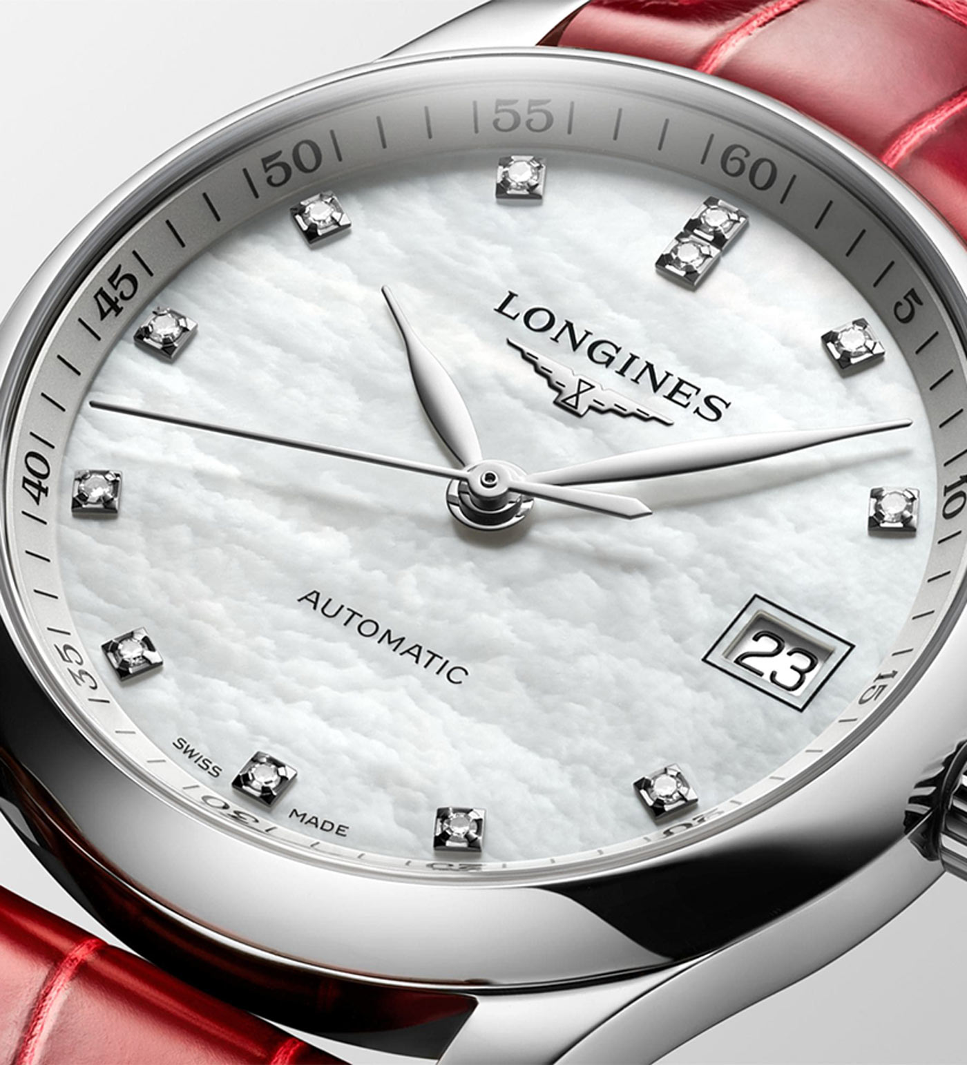 Zegarek damski Longines Master Collection L2.357.4.87.2 łączy w sobie klasyczną elegancję i doskonałą jakość, które nigdy nie przestaną zachwycać miłośniczek wyjątkowych zegarków. W proponowanej wersji olśniewa blaskiem 12 diamentów Top Wesselton oraz unikalną tarczą z kolorowej masy perłowej. Zegarek stworzony z najwyższej jakości komponentów, jak nierysujące się szkło szafirowe z kilkoma warstwami powłoki antyrefleksyjnej po obu stronach, czy szlachetna stal nierdzewna, budująca 34-milimetrową kopertę. Egzotyczny pasek ze skóry aligatora, będzie cieszyć swą, nieskazitelną i ekskluzywną estetyką nawet zapracowane posiadaczki. Zapięcie motylkowe otwierane za pomocą przycisków zapewni bezpieczeństwo i wygodę użytkowania.