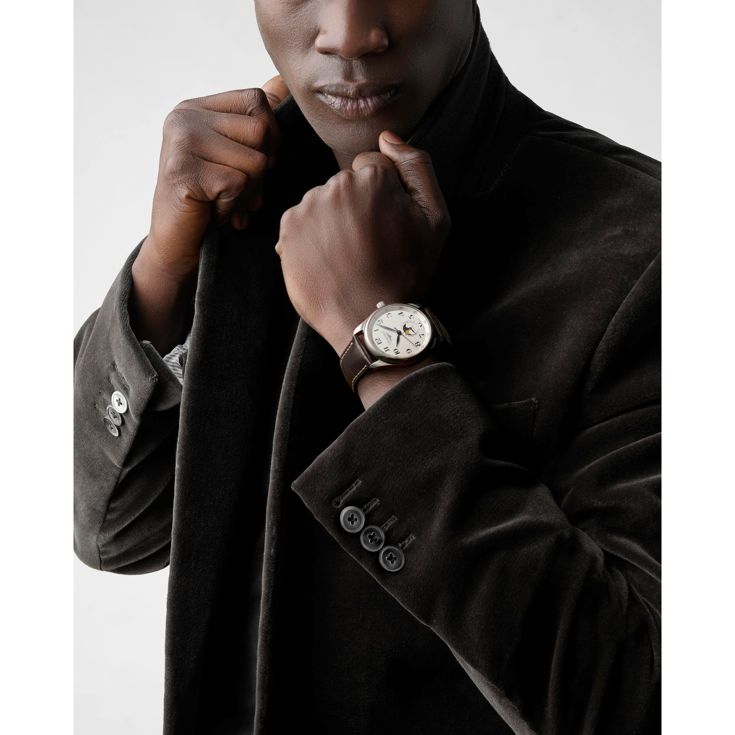 Longines, jako tradycyjna marka zegarmistrzowska od samego początku produkuje wyjątkowe zegarki. Model Master Collection L2.909.4.78.3 stanowi doskonałą ilustrację tego etosu, co widać po sukcesie kolekcji, z której pochodzi czasomierz, od czasu jej powstania w 2005 roku. Zegarek łączy klasyczną elegancję z doskonałą jakością, która nigdy nie przestaje zachwycać tych, którzy doceniają wyjątkowe zegarki. Elegancka obudowa wykonana ze stali szlachetnej ma średnicę 40 mm, a jej spód jest wyposażony w szkło, które ukazuje pięknie zdobiony mechanizm automatyczny. Oprócz podstawowego czasu wskazuje on dodatkowo fazy księżyca oraz datę. Datownik jest w formie wskazówki u dołu cyferblatu. Wskazówki w stylu retro są czytelne i obracają się nad srebrną tarczą z arabskimi indeksami. Całości dopełnia ekskluzywny pasek z aligatora CITES z zapięciem motylkowym otwieranym za pomocą przycisków.