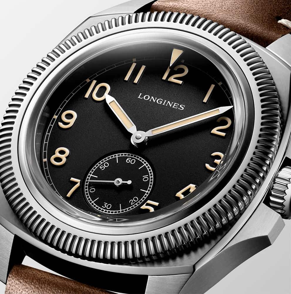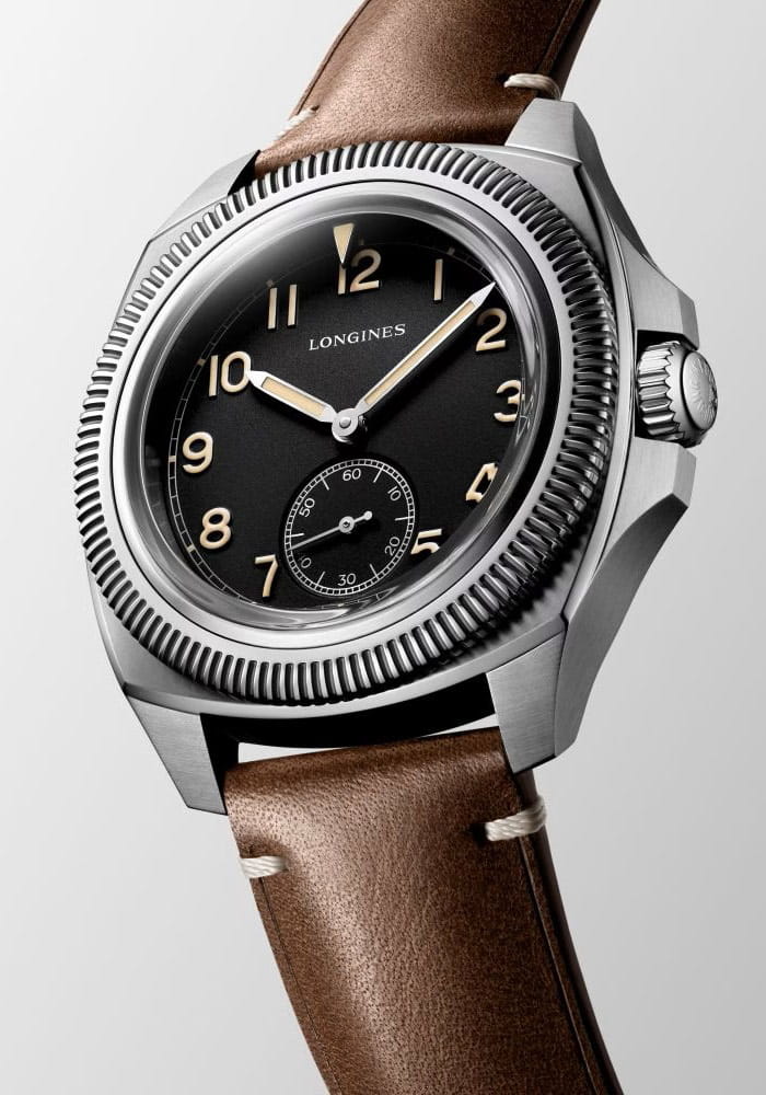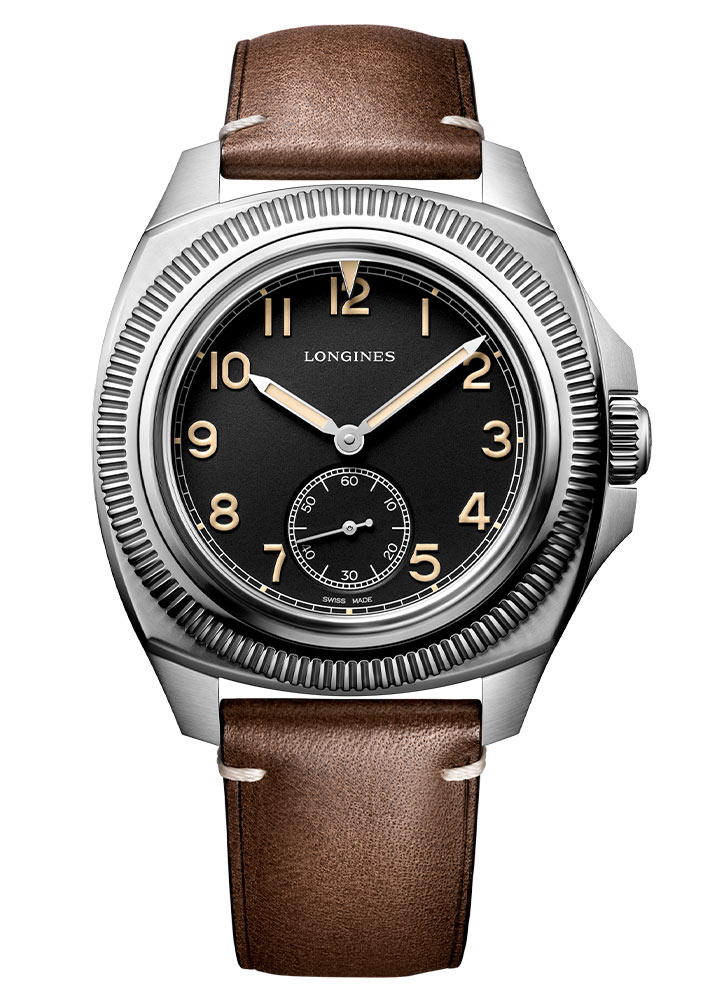 Longines L2.838.4.53.0 to wersja zegarka na brązowym pasku skórzanym i z czarną tarczą o matowym wykończeniu. Białe cyfry arabskie zostały pokryte Super-LumiNova® w odcieniu postarzanego radu. Ich rolę stanowi wskazywanie kolejnych godzin, które podkreśla skala minutowa w rodzaju toru kolejowego. W centrum cyferblatu zostały umieszczone proste wskazówki wypełnione fosforującą powłoką i z rodowanymi końcówkami. Powiększona postać funkcji małej sekundy na godzinie 6 równocześnie z rowkowanym pierścieniem, przypominają o pionierskim, użytkowym charakterze zegarków typu pilot. W pełnym ujęciu projekt emanuje elegancją oraz urzeka równowagą.