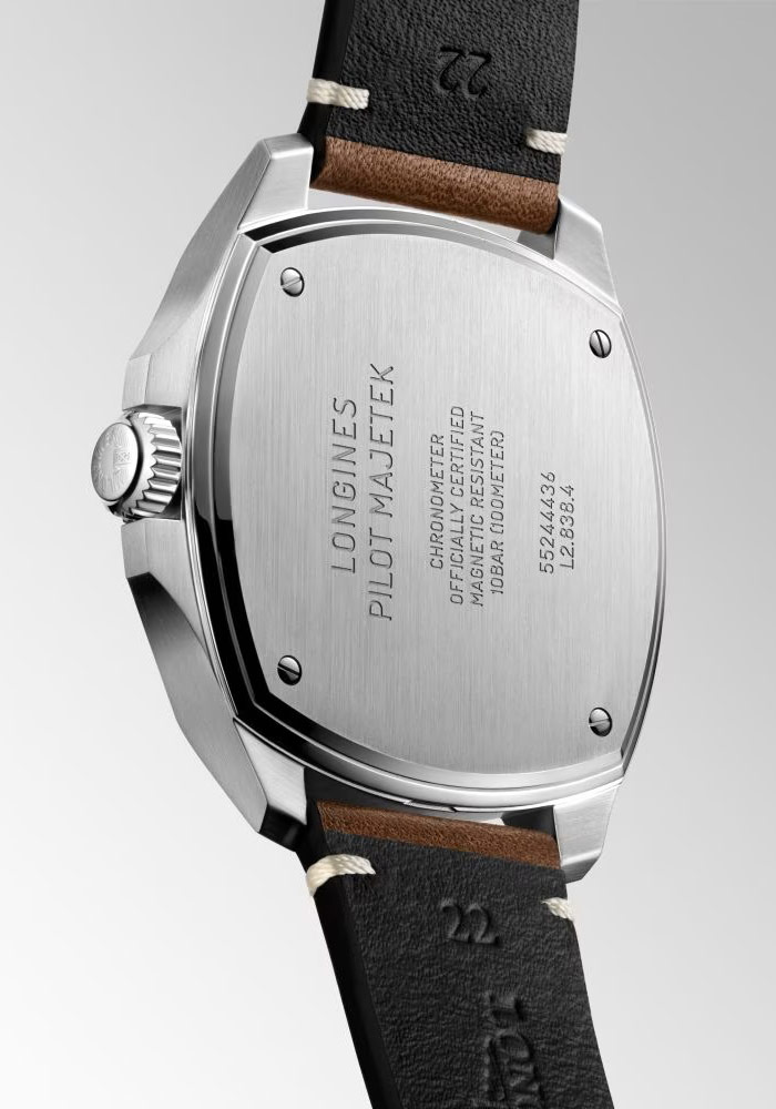 Nawiązując do wydania odgrywającego rolę inspiracji nowy czasomierz lotniczy Longines Pilot Majetek został umieszczony w stalowej kopercie o kształcie poduszki. Kształt ten został zastrzeżony w Międzynarodowym Urzędzie Własności Przemysłowej w 1935 roku. Dzisiejsza odsłona prezentuje charakter poduszkowatej koperty w nowym, a przy tym równie unikalnym wydaniu. Modyfikacji uległy proporcje. Subtelnie łukowata linia i bardziej zaokrąglone uszy są odpowiednie dla współczesnego zegarmistrzostwa. Dodatkowo model został wyposażony w obracający się w dwóch kierunkach, rowkowany pierścień lunety. Osiągnięta specyfika natychmiast przywodzi skojarzenie z zegarkiem z 1935 roku, który na stałe zaznaczył się w ponad 190-letniej historii Longines.