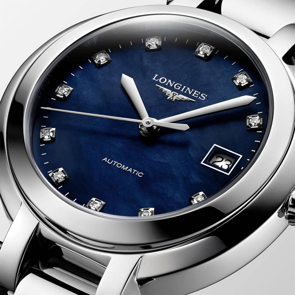 Srebrzysty księżyc w wiosenną noc; obiekt, który olśniewa, osiąga swój szczyt, a następnie znika. Longines PrimaLuna, symbol upływającego czasu, życia i księżyca, który raczy swymi okrągłymi, subtelnymi liniami, jest hołdem oddanym temu srebrzystemu ciału. Jego miękką sylwetkę akcentuje nadzwyczajna czystość tarczy z naturalnej masy perłowej, a całość rozświetla gra mieniących się diamentów.