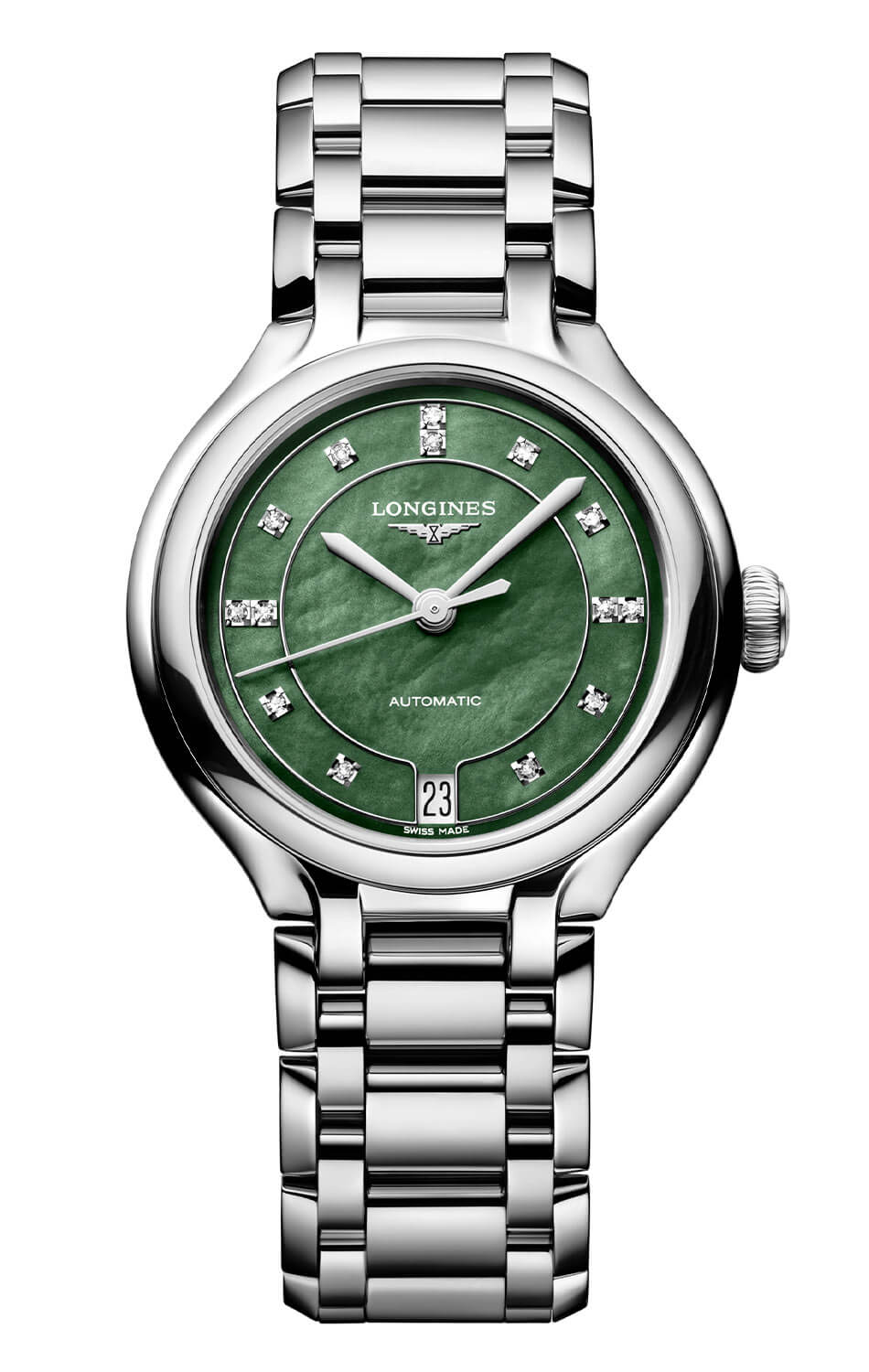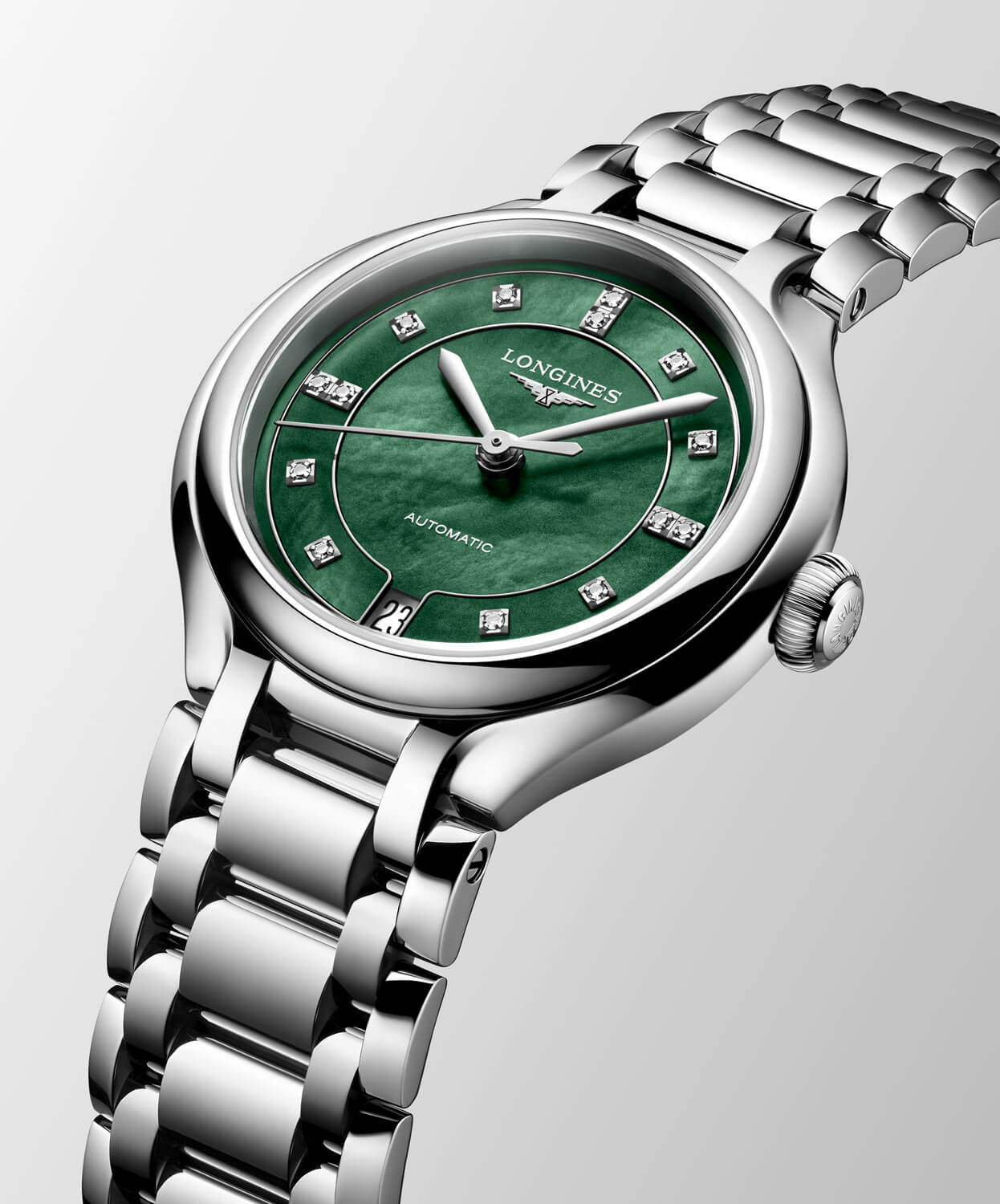Automatyczny zegarek damski z diamentami dla Pań ceniących klasyczną elegancję w nowoczesnym wydaniu. Model z mechanizmem Longines L888, 72-godzinną rezerwą chodu i bransoletą to wyrafinowany akcent codziennego stylu. Tarcza z masą perłową o unikatowym wzorze.