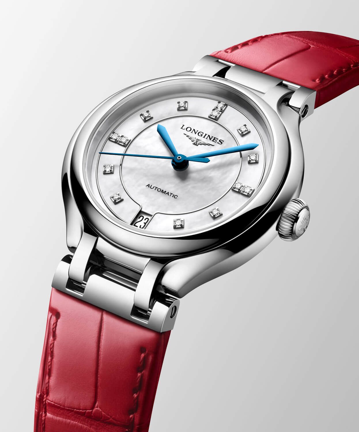 Automatyczny zegarek damski z diamentami dla Pań ceniących klasyczną elegancję w nowoczesnym wydaniu. Model z mechanizmem Longines L888, 72-godzinną rezerwą chodu i paskiem ze skóry egzotycznej to wyrafinowany akcent codziennego stylu.