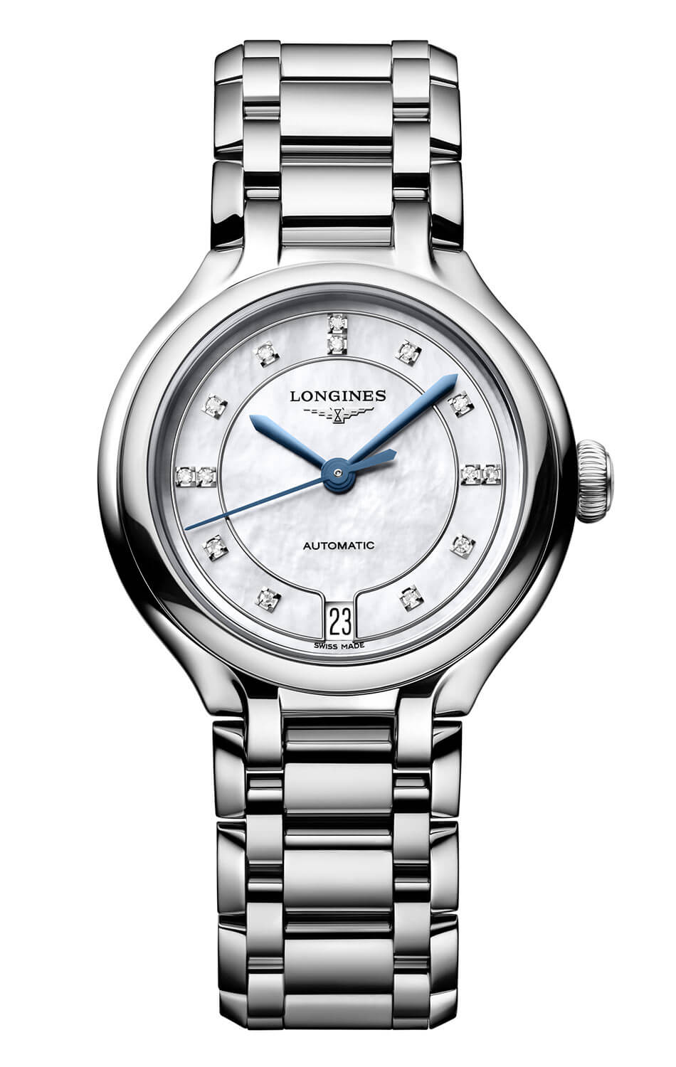 Zegarek Longines PrimaLuna Diamonds L8.124.4.87.6 na bransolecie to ukłon w stronę klasyki, ale podany w świeżej, zdecydowanej formie. Idealny wybór dla kobiet, które nie potrzebują nadmiaru – wystarczy jeden właściwy akcent.