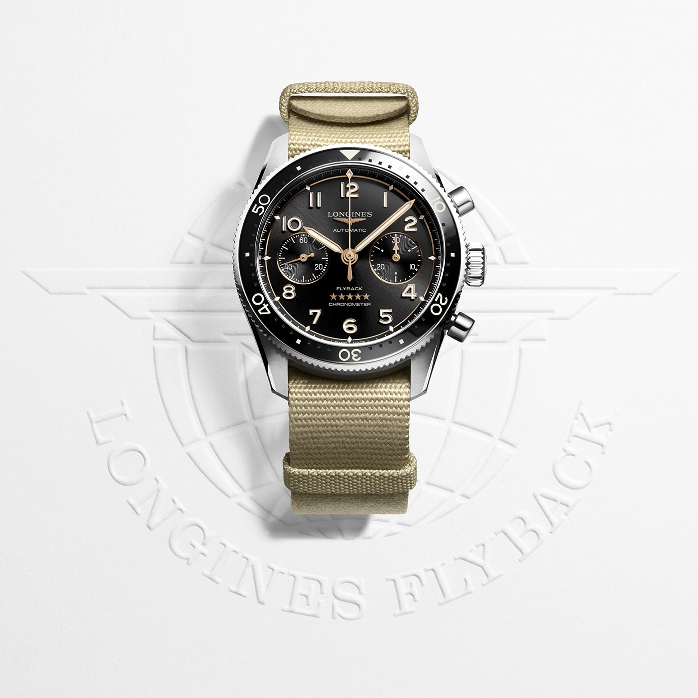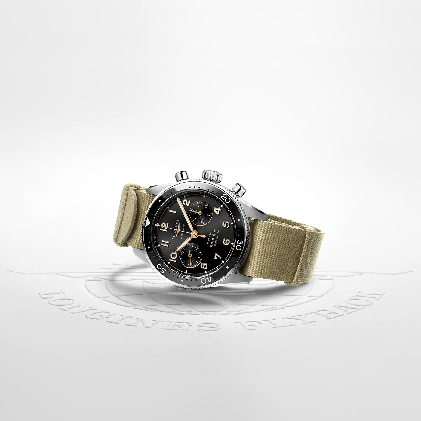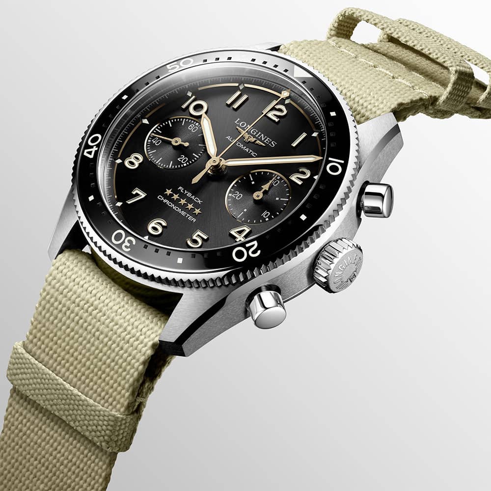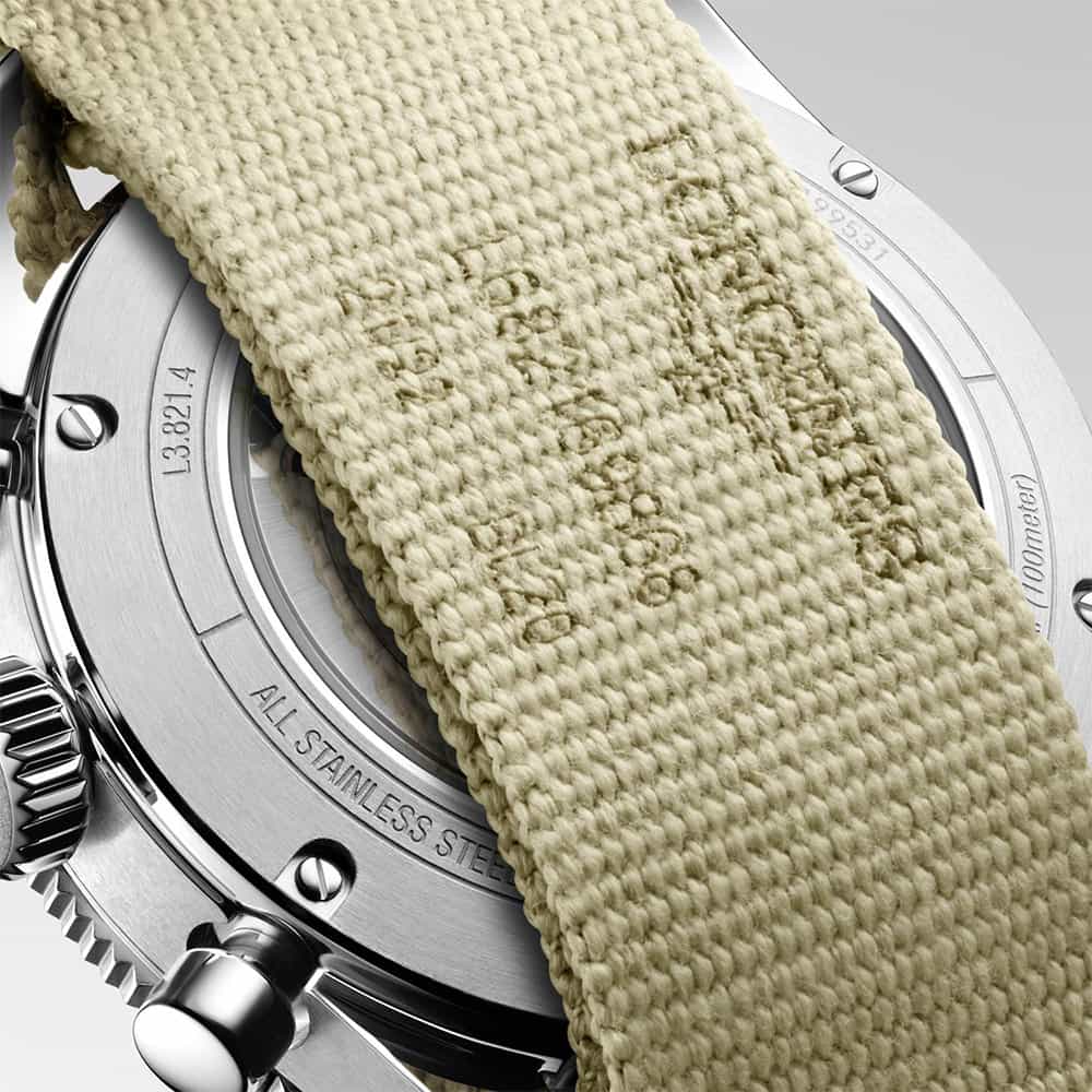 Do uszu obudowy przymocowany został pasek materiałowy w kolorze beżowym z klasycznym zapięciem na klamerkę. Pasek cechuje miękkość, elastyczność oraz niska waga, co zapewni komfort w czasie użytkowania czasomierza. Design został zaprojektowany tak, aby każdy właściciel zegarka mógł cieszyć swoje oko już po pierwszym spojrzeniu. Modna kolorystyka oraz wyrafinowana estetyka zapewnią łatwe dopasowanie do outfitów na spotkania biznesowe jak i te mniej formalne. Longines Spirit Flyback będzie świetnym uzupełnieniem do każdej męskiej garderoby.