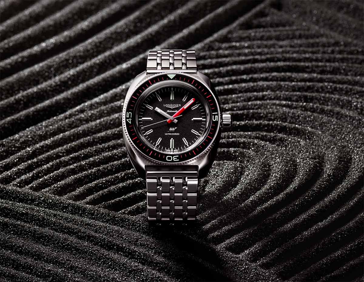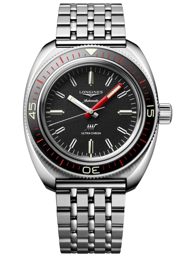 Wygląd nowego czasomierza Longines Ultra-Chron oraz jego profesjonalne funkcje do nurkowania zostały zaczerpnięte od modelu dla nurków z 1968 roku. Zegarek wyposażono w jednokierunkowo obrotowy bezel posiadający szafirową wkładkę z luminescencyjnymi szczegółami, a także zakręcany dekiel i wkręcaną koronkę. Dzieło to oferuje doskonałą czytelność i wodoszczelność do 30 barów (300 metrów).