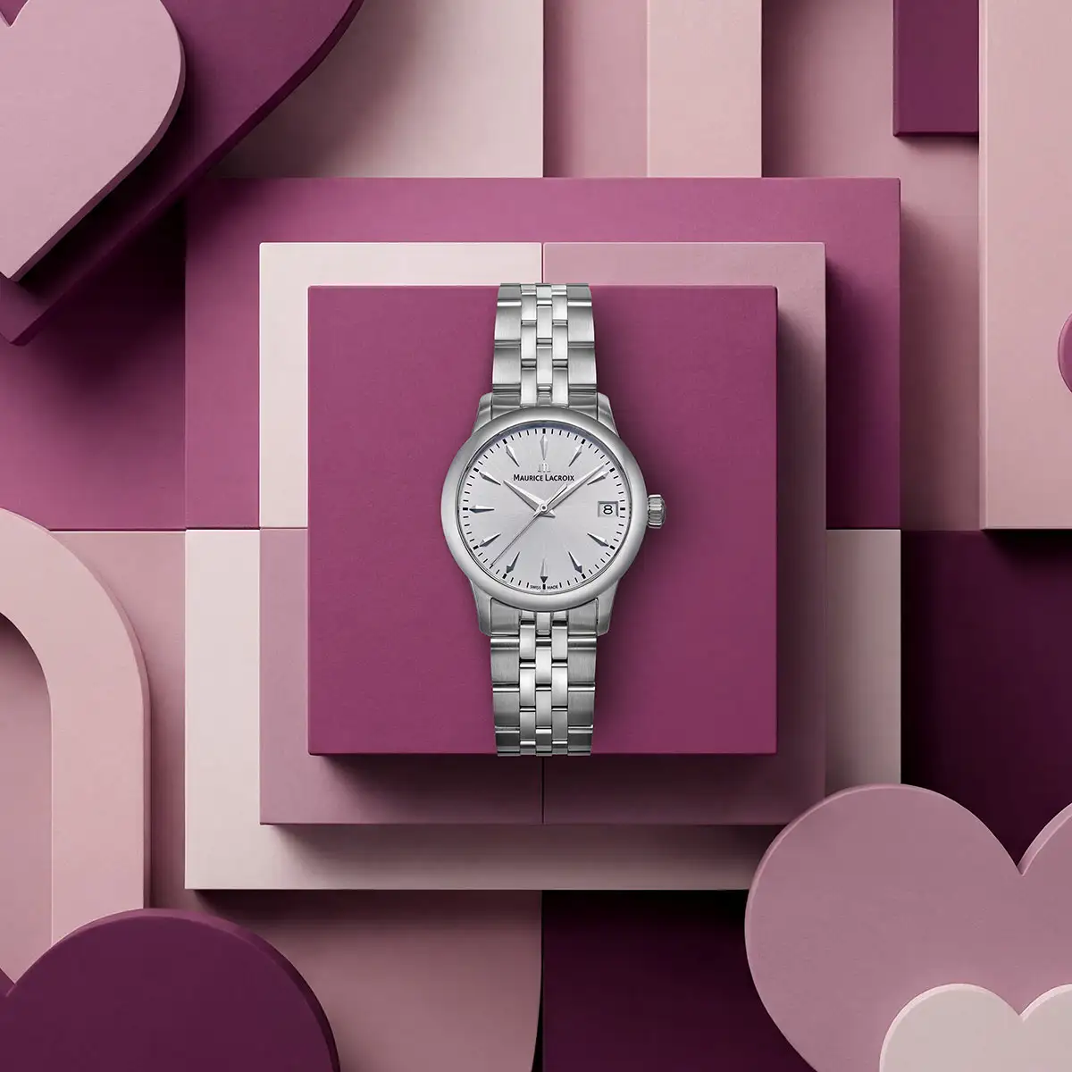 Maurice Lacroix 1975 Quartz 33 mm 751006-SS002-130-1 to elegancki zegarek damski, który łączy subtelną estetykę retro z niezawodnością nowoczesnych mechanizmów szwajcarskich.