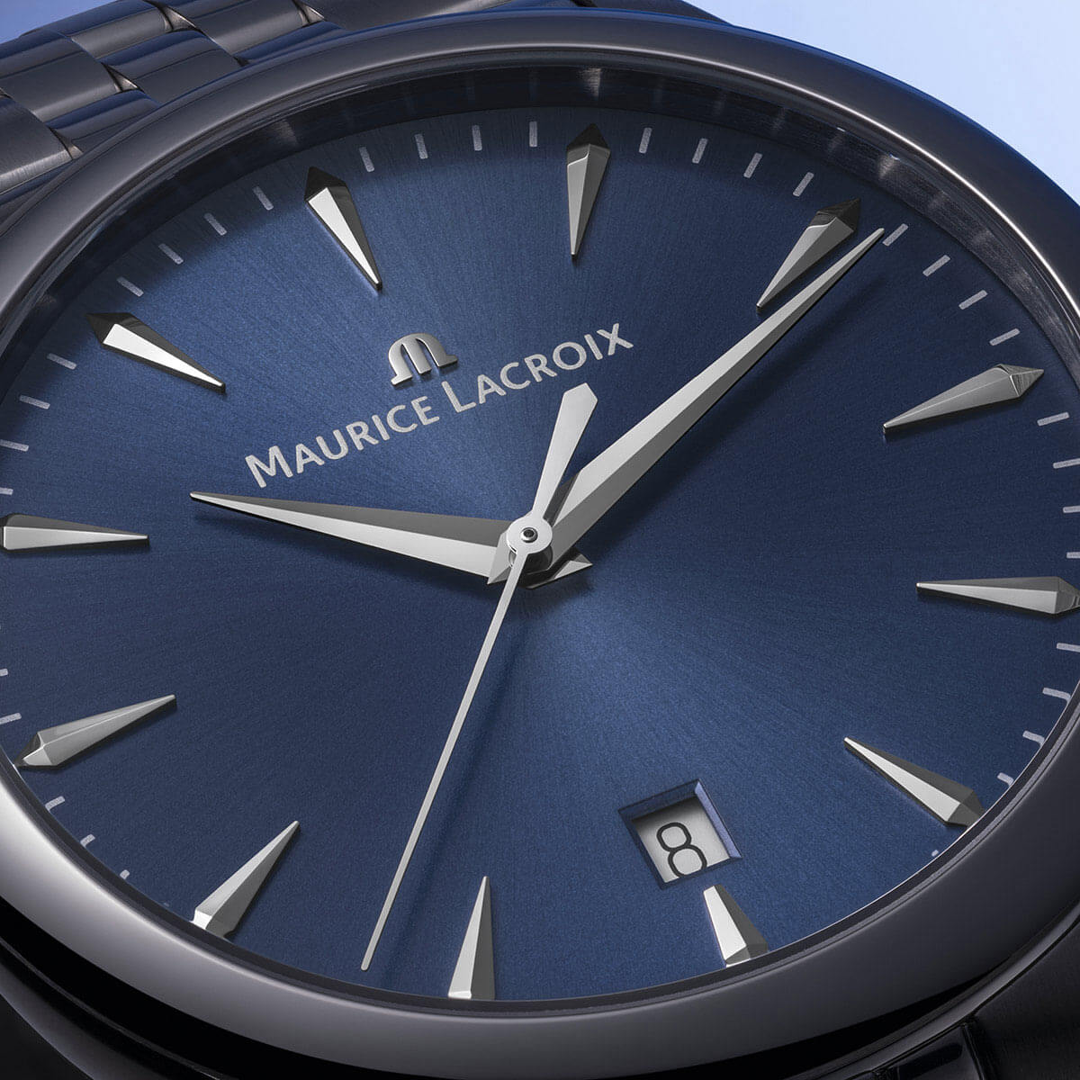 Główna scena należy jednak do tarczy, która zachwyca głębią koloru i subtelnym szlifem słonecznym. Niebieskie tło efektownie odbija światło, a ręcznie nakładane trapezowe indeksy i fasetowane wskazówki dauphine nadają jej wyrafinowanego charakteru. Na godzinie szóstej umieszczono datownik, który dyskretnie dopełnia minimalistyczną kompozycję tarczy. Precyzyjny szwajcarski mechanizm kwarcowy gwarantuje punktualność w każdej sytuacji, czyniąc zegarek doskonałym wyborem dla tych, którzy oczekują niezawodności bez kompromisów. Maurice Lacroix 1975 751007-SS002-430-1 to więcej niż zegarek – to esencja ponadczasowej elegancji, zamknięta w formie gotowej sprostać wymaganiom współczesnych koneserów.
