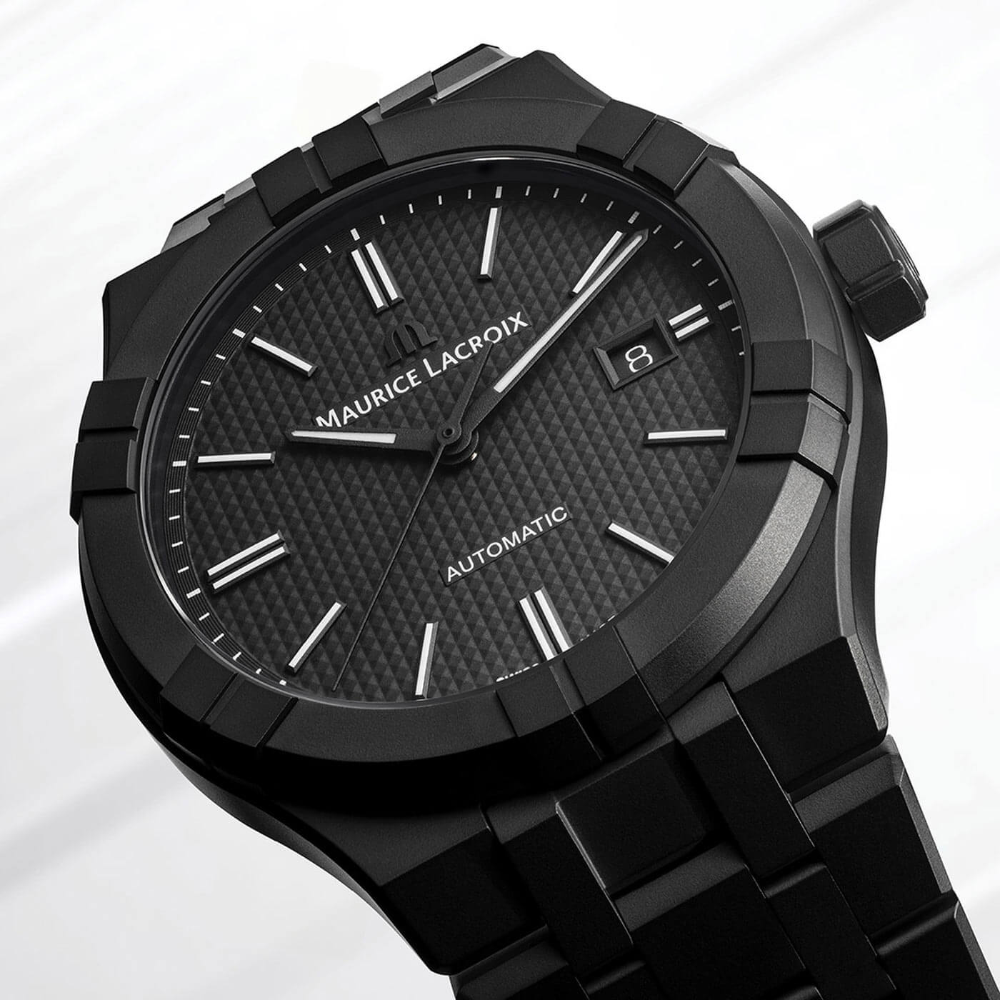 Automatyczny zegarek Maurice Lacroix AIKON AI6008CRM223302 w matowej czerni o średnicy 42 mm to esencja nowoczesnej elegancji i mistrzowskiego wykonania. Jego wyrazisty, współczesny design przyciąga uwagę i podkreśla wyrafinowany styl właściciela. Model ten doskonale wpisuje się w renomę serii AIKON, słynącej z dbałości o najdrobniejsze detale i niezrównanej jakości wykończenia. Charakterystyczna luneta z ramionami w reliefie i kontrastującym wykończeniem oraz nowatorska bransoleta wykonana z ceramiki technicznej gwarantują komfort noszenia dzięki precyzyjnemu dopasowaniu do nadgarstka. Zastosowanie zaawansowanej ceramiki technicznej łączy estetykę z wyjątkową trwałością, oferując odporność na zarysowania i korozję, a przy tym zapewniając hipoalergiczność. Maurice Lacroix AIKON Automatic to nie tylko zegarek, ale także wyraz stylu, harmonijnie łączący funkcjonalność z elegancją, co czyni go idealnym wyborem dla tych, którzy cenią najwyższą jakość i doskonały design.