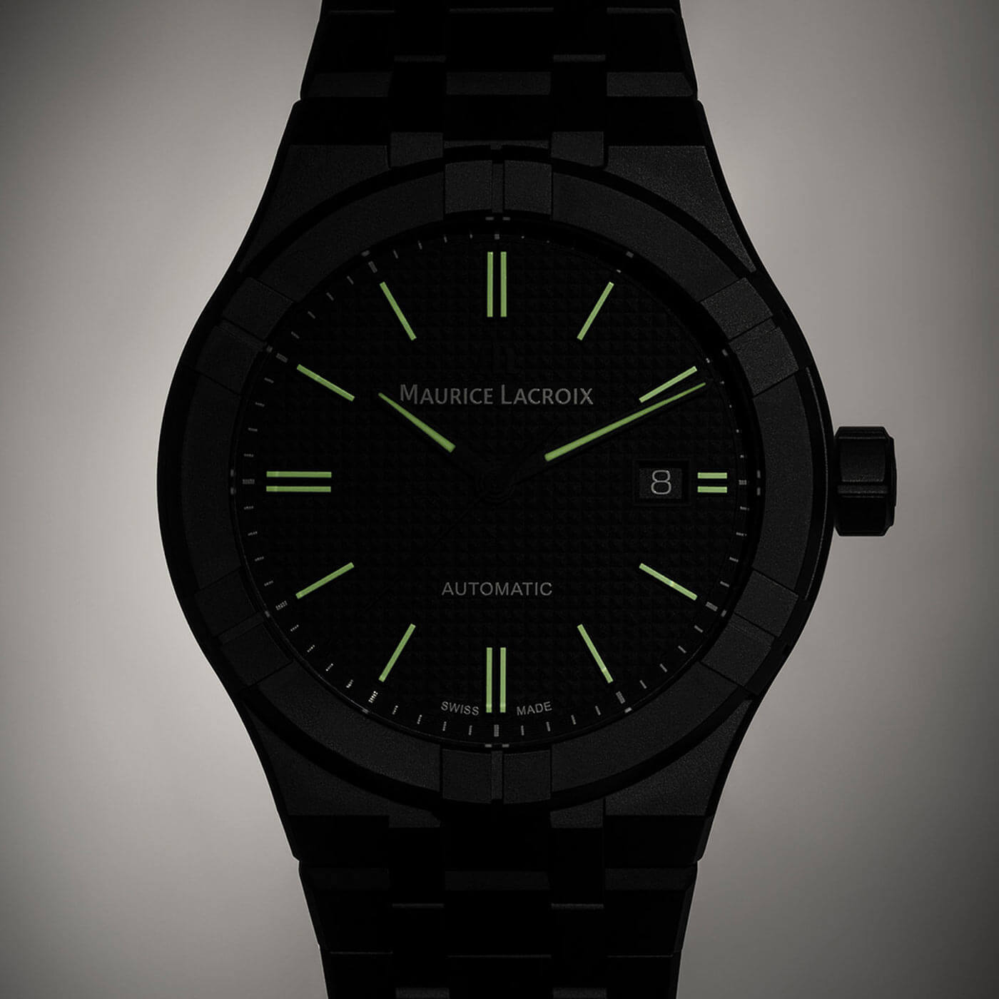 Pod odpornym na zarysowania szkłem szafirowym kryje się czarna tarcza o minimalistycznym designie, wzbogacona subtelnym wzorem drobnych kwadratów. Jej przejrzystość zapewniają precyzyjnie wykonane indeksy i wyraźne wskazówki, które sprawiają, że odczyt godziny jest wyjątkowo łatwy. Delikatnie zintegrowany datownik dyskretnie wskazuje aktualny dzień miesiąca, dodając funkcjonalności. Sercem zegarka jest niezawodny, szwajcarski mechanizm automatyczny ML115 z rezerwą chodu do 38 godzin, gwarantujący płynność i precyzję działania. Tylna część zegarka zachwyca miłośników zegarmistrzowskiego kunsztu – przeszklony dekiel odsłania rodowany mechanizm ozdobiony eleganckimi zdobieniami, takimi jak Perlage, Colimaçon oraz słynny wzór Côtes de Genève na rotorze. Ten wyjątkowy mechanizm nie tylko imponuje swoją precyzją, ale również urzeka estetyką, która nadaje zegarkowi Maurice Lacroix Automatic unikalny, luksusowy charakter.