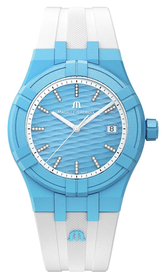 Kwarcowy zegarek z diamentami Maurice Lacroix Aikon Tide AI2008-AAAA1-3A0-0 przyciąga wzrok, wprowadza w fajny nastrój, a do tego oddziałuje na rzecz czystszych oceanów. Bądź gotów/owa na prawdziwe olśnienie!