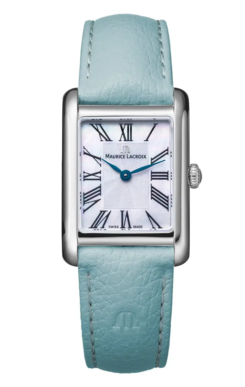 Model o referencji FA1205-SS001-160-4 z kolekcji Fiaba Square uzupełnia pasek z naturalnej skóry cielęcej, ozdobiony tłoczonym logo „M” i starannie dobranym przeszyciem w tonacji ton-in-ton. To właśnie dzięki temu wykończeniu ten zegarek damski na błękitnym pasku skórzanym Maurice Lacroix wyróżnia się nie tylko pod względem wygody, ale i wyrafinowania. System szybkiej wymiany paska dodatkowo podkreśla jego funkcjonalność, wpisując się w filozofię współczesnego luksusu.