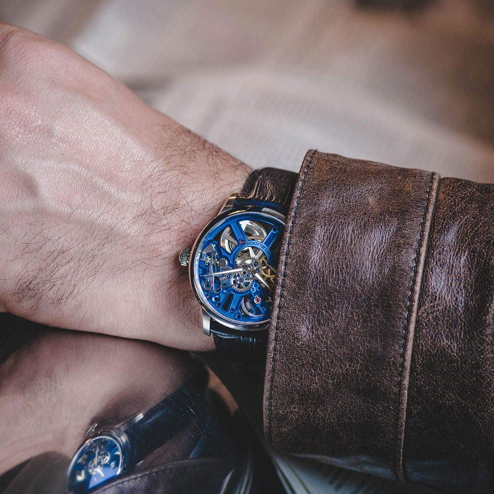 Unikalny, niezwykły zegarek szwajcarski Maurice Lacroix. Masterpiece Skeleton zawiera ducha nowoczesności oraz tradycyjnego zegarmistrzostwa na najwyższym poziomie. Stosowana technika zdobienia mechanizmu jest jedną z najbardziej delikatnych. Zeszkieletowanie mechanizmu to żmudna praca, która wymaga najwyższego poziomu precyzji i zręczności ze strony rzemieślnika. Cała anatomia mechanizmu Maurice Lacroix ML134 dumnie prezentuje się przez przeszkloną szkłami szafirowymi kopertę zarówno z góry i z dołu. Elementy mechanizmu są zdobione ze szczególną starannością i uwagą, a każda część jest osobno polerowana. Mostki, przekładnie oraz koła zębate są na pełnym widoku, doskonale wykończone w najdrobniejszych szczegółach. Ręcznie nakręcany mechanizm posiada 45 godzinową rezerwę chodu oraz 17 kamieni łożyskowych (jewels).