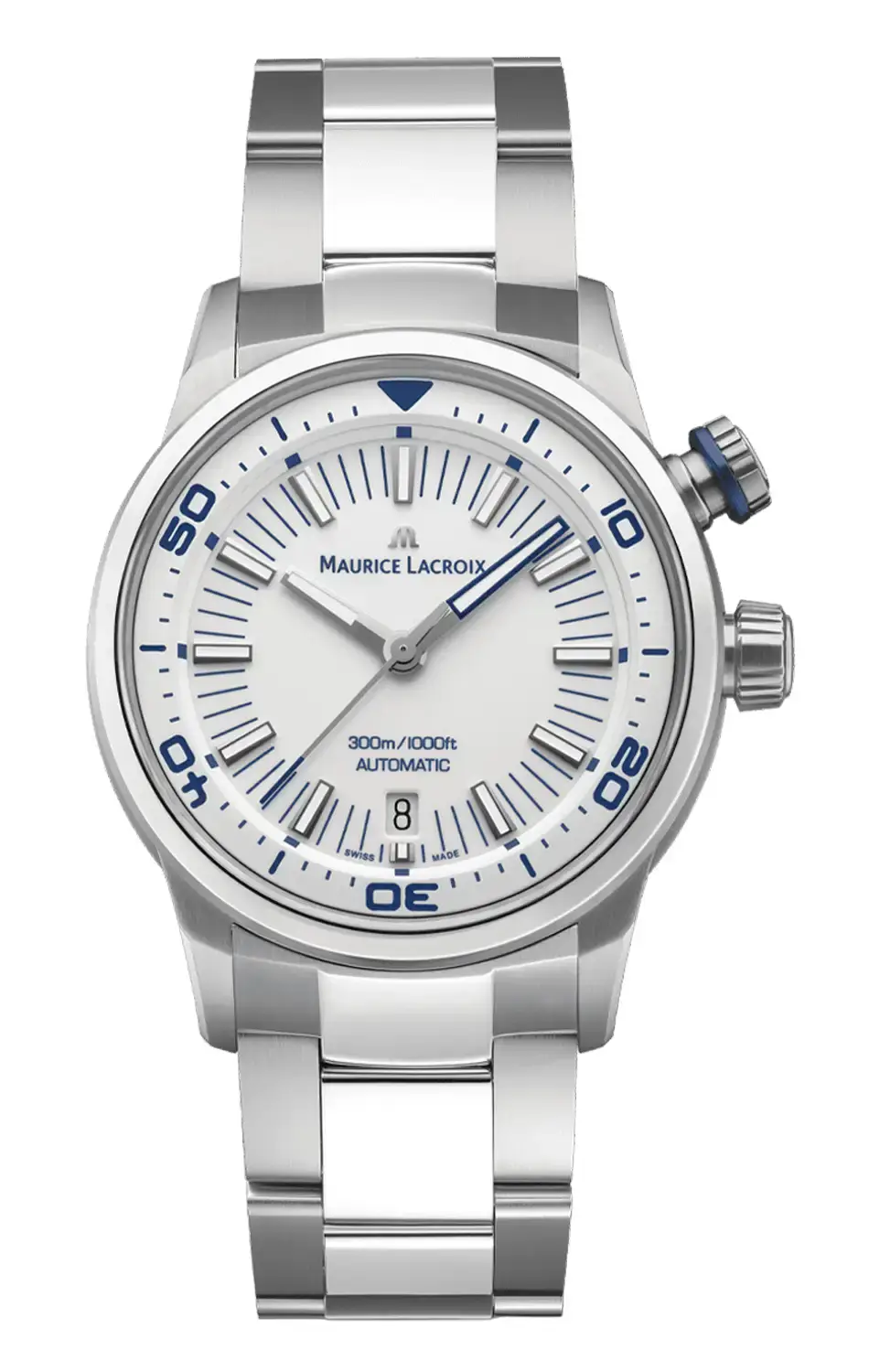 Maurice Lacroix Pontos S Diver PT6248-SS002-131-1 to męski zegarek nurkowy, który łączy prestiżowe rzemiosło Swiss Made z nowoczesną funkcjonalnością divera stworzonego z myślą o dynamicznym stylu życia. Biała tarcza o lakierowanym wykończeniu, rodowane indeksy oraz białe wypełnienie Super-LumiNovą podkreślają jego sportową elegancję, a akcenty w odcieniu granatowym dodają charakteru i zwiększają czytelność w trudniejszych warunkach. Koperta o średnicy 42 mm została wykonana ze stali nierdzewnej i wykończona połączeniem powierzchni szczotkowanych i polerowanych, co tworzy wyważoną, wyrafinowaną kompozycję. Dzięki wodoszczelności 30 ATM (300 metrów), zakręcanej koronce oraz szafirowemu szkłu z podwójną powłoką antyrefleksyjną, zegarek męski typu diver Maurice Lacroix PT6248-SS002-131-1 jest przygotowany zarówno na głębiny, jak i na wyzwania miejskiej codzienności.