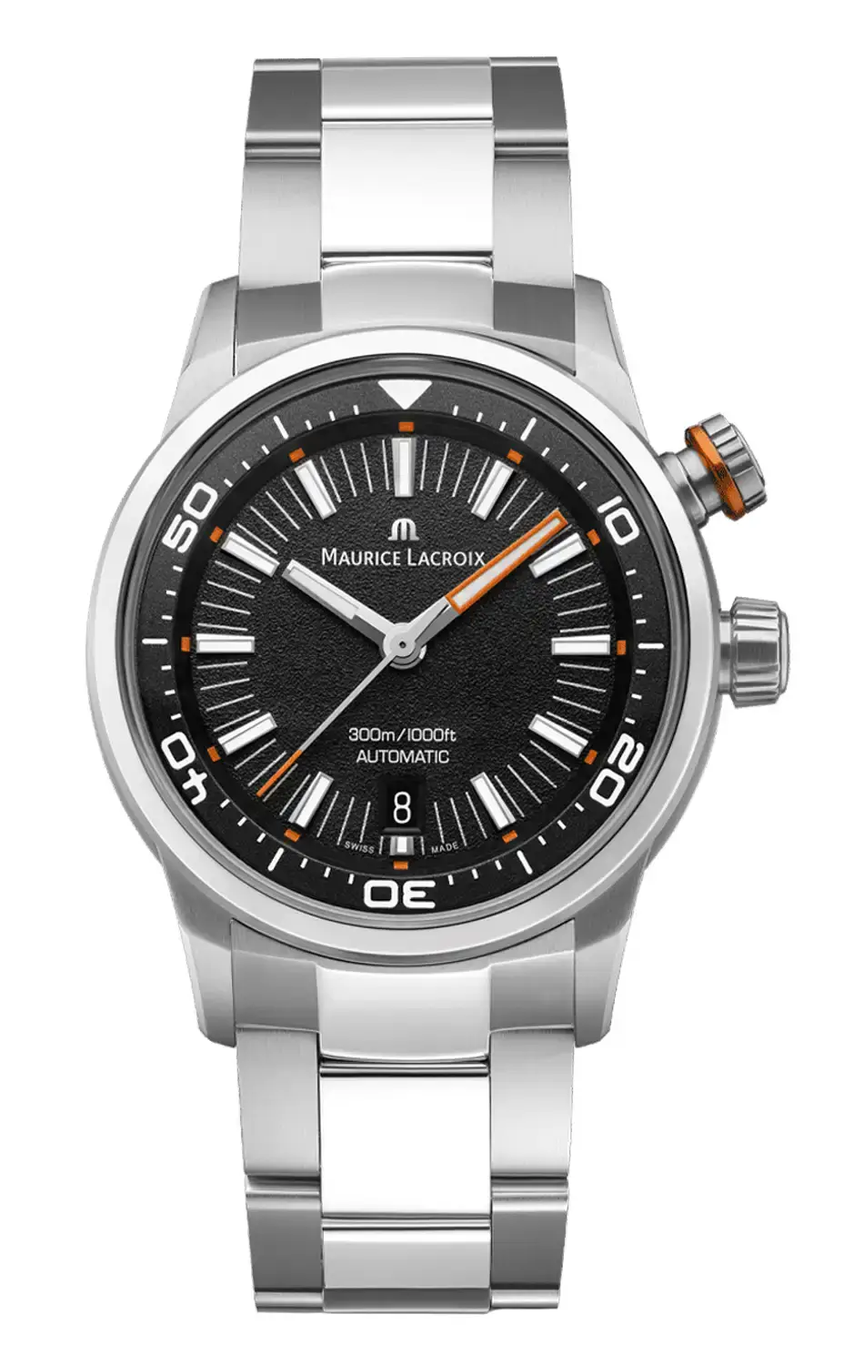 Maurice Lacroix Pontos S Diver PT6248-SS002-331-1 to męski zegarek nurkowy, który łączy prestiżowe rzemiosło Swiss Made z nowoczesną funkcjonalnością divera stworzonego z myślą o dynamicznym stylu życia. Czarna tarcza o ziarnistej fakturze, rodowane indeksy oraz białe wypełnienie Super-LumiNovą podkreślają jego sportową elegancję, a akcenty w odcieniu pomarańczy dodają charakteru i zwiększają czytelność w trudniejszych warunkach. Koperta o średnicy 42 mm została wykonana ze stali nierdzewnej i wykończona połączeniem powierzchni szczotkowanych i polerowanych, co tworzy wyważoną, wyrafinowaną kompozycję. Dzięki wodoszczelności 30 ATM (300 metrów), zakręcanej koronce oraz szafirowemu szkłu z podwójną powłoką antyrefleksyjną, zegarek męski typu diver Maurice Lacroix PT6248-SS002-331-1 jest przygotowany zarówno na głębiny, jak i na wyzwania miejskiej codzienności.