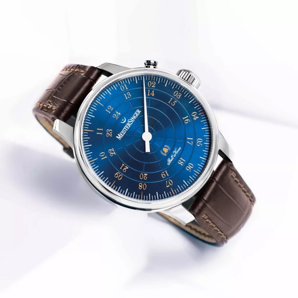 Bell Hora to wysokiej jakości klasyczny zegarek męski MeisterSinger. Szwajcarski mechanizm automatyczny z 38-godzinną rezerwą chodu, stworzony na bazie Sellita SW200, dogłębnie zmodyfikowany przez inżynierów firmy, przez 60 minut kumuluje energię do precyzyjnego, dokładnie odmierzonego dzwonka. Ruch można łatwo zobaczyć przez czterokrotnie zakręcaną szklaną wystawę. Pomysłowe urządzenie uderza w widelec dźwiękowy znajdujący się za tarczą dokładnie o pełnej godzinie. Podczas produkcji tej komplikacji, MeisterSinger był pełen dumy, że udało się stworzyć przyjemny dźwięk. Producent nie jest zaangażowany w muzykę tylko ze względu na swoją nazwę, teraz firma sprawia, że to połączenie jest słyszalne, w sam raz, aby świętować swoje 20 urodziny. Co więcej, przycisk nad koroną służy do wyłączenia funkcji „Sonnerie au Passage”.