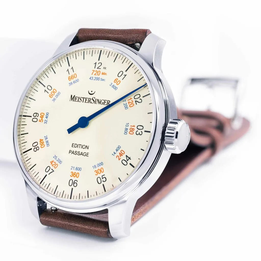 Niemiecka manufaktura MeisterSinger z przyjemnością prezentuje elegancki czasomierz MeisterSinger Edition Passage Limited Edition ED-PASSAGE przeznaczony dla wyrafinowanych mężczyzn. Prezentowany czasomierz dostępny jest w edycji limitowanej - 100 egzemplarzy na cały świat. Zwiększa to atrakcyjność zwłaszcza dla kolekcjonerów wyjątkowych czasomierzy. Zegarek MeisterSinger Edition Passage w stylu retro to owoc ciężkiej pracy manufaktury niemieckiej, która nie uznaje kompromisów.