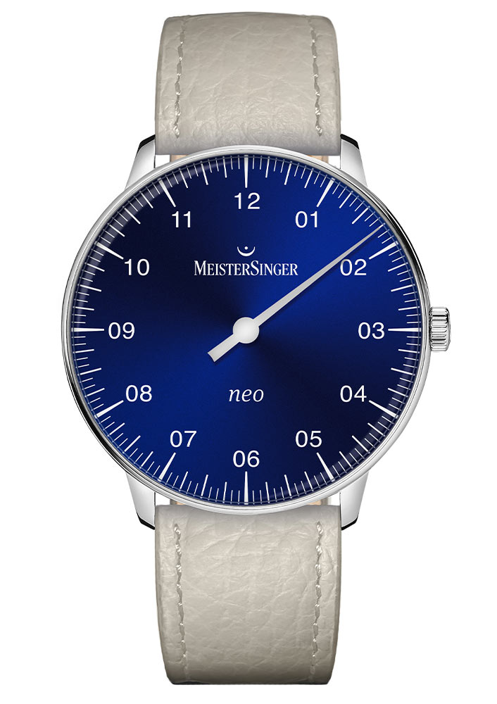 Niemiecka manufaktura MeisterSinger z przyjemnością prezentuje elegancki czasomierz MeisterSinger Neo NES908 przeznaczony dla wyrafinowanych kobiet. Jego klarowny, zrównoważony design nadaje mu charakter lat 60. Dwuczęściowa konstrukcja koperty, złożona z części środkowej i rewersu, była wyjątkowo typowa dla tego okresu. W zestawieniu z popularnym w tamtych latach wypukłym szkłem Neo został zaprojektowany bez ramki, kreując ujmująco piękny wygląd. W efekcie ten automatyczny zegarek damski w stylu vintage MeisterSinger odznacza się wąską krawędzią koperty i dużym, niebieskim cyferblatem.