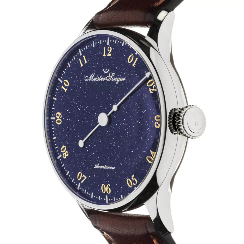 Największą ozdobą tego modelu jest tarcza z awenturynu, której powierzchnia pokryta jest drobinkami kwarcu – połyskujących jak rozgwieżdżone niebo. Jedyna w swoim rodzaju wskazówka, inspirowana dawnymi zegarkami kieszonkowymi, dodaje całości klasycznego charakteru. Wewnątrz pracuje automatyczny mechanizm Sellita SW200, znany z niezawodności i precyzji. MeisterSinger Automatic PMN9908AV to zegarek, który zachwyca formą, techniką i wyjątkową filozofią odczytu czasu – propozycja dla tych, którzy chcą nosić na nadgarstku coś naprawdę niezwykłego.
