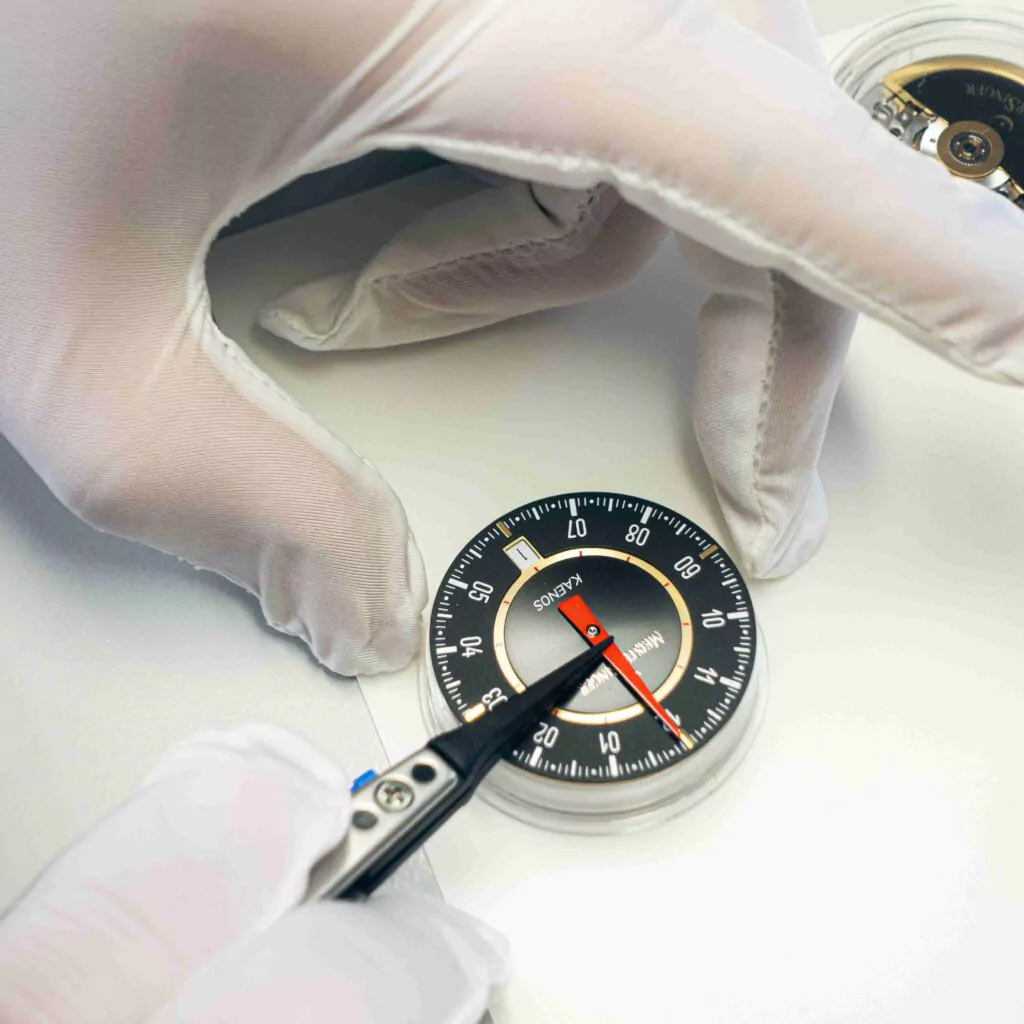 MeisterSinger X Alain Silberstein Edition Kaenos Grand Date ED-KSGD-AS2025 to model, który redefiniuje pojęcie klasycznego zegarka męskiego, wychodząc poza utarte rozwiązania stylistyczne. Projekt, oparty na idei jednowskazówkowego wskazania, pozwala spojrzeć na czas inaczej – nie jako sekwencję sekund, lecz jako przestrzeń do wykorzystania. Czarna tarcza z matowym wykończeniem i precyzyjnie nadrukowaną podziałką minutową zachowuje czytelność mimo niestandardowej formy, a charakterystyczna igłowa wskazówka porusza się płynnie, wprowadzając naturalny rytm w odczycie godziny.