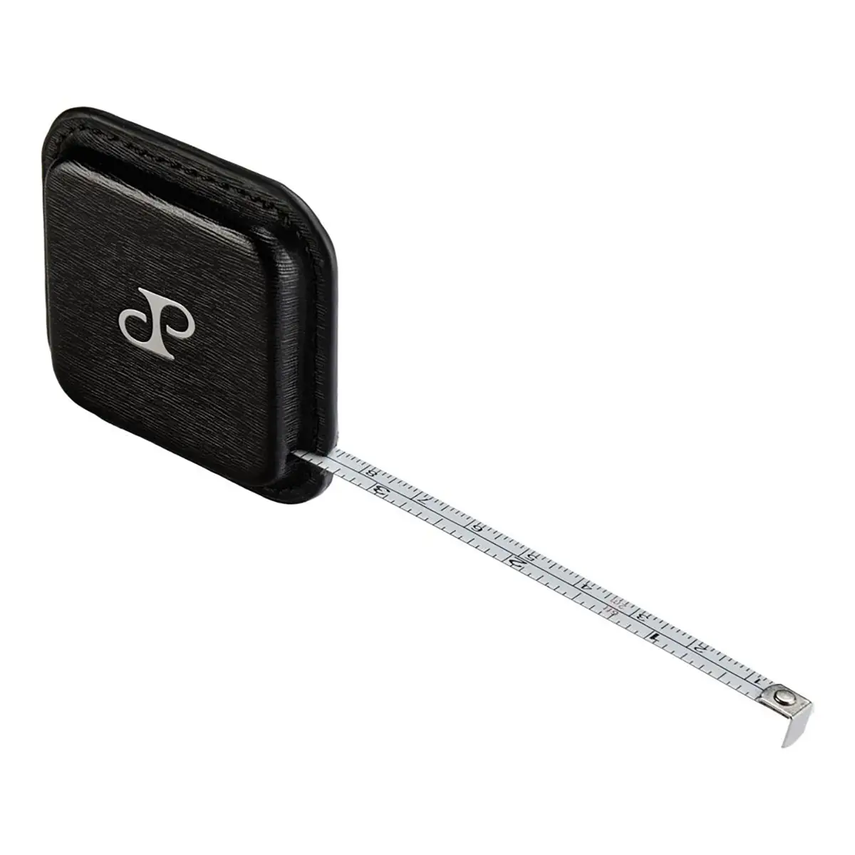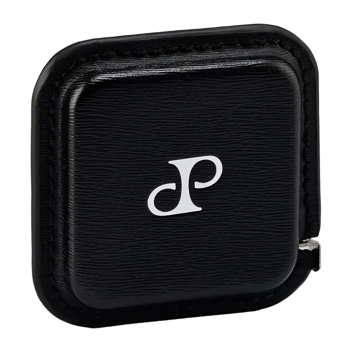 Obudowa została wykończona czarną tłoczoną skórą wegańską z dodatkiem nubuku, a elegancki charakter całości podkreśla srebrne logo DP. Wewnątrz znajduje się zwijana stalowa taśma o długości 150 cm, idealna do miar domowych, stylizacyjnych czy kreatywnych projektów. Wysoka jakość wykonania i dbałość o detale to znaki rozpoznawcze kolekcji Philipp.