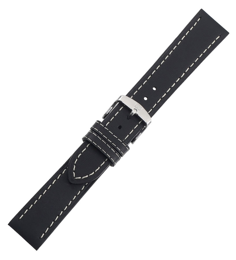 Czarny skórzany pasek Di-Modell Jumbo do zegarków sportowych, wyjątkowo mocny, z białym przeszyciem, w rozmiarach 18-26 mm.