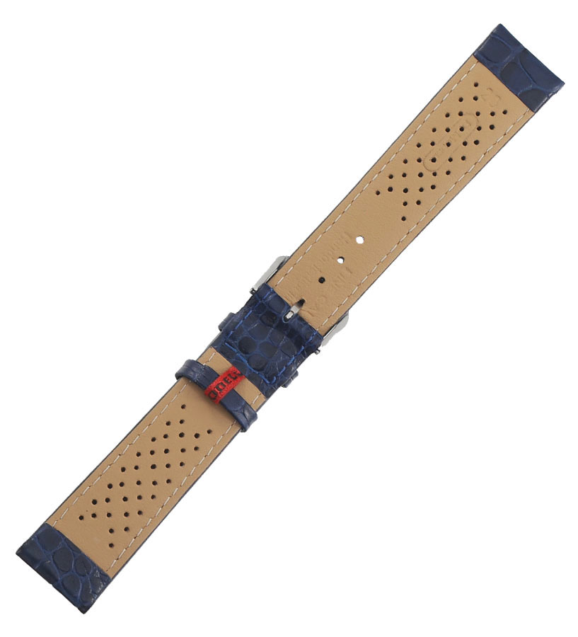 Skórzany pasek do zegarka w kolorze niebieskim Di-Modell Orlando wykonany jest z najlepszej skóry cielęcej z kolekcji NOBLEHOUSE Manufaktur. Piękna imitacja słojów aligatora na wysokiej jakości skórze cielęcej i umiejętne rzemiosło nadają szczególnego charakteru. Dostępny w wielu szerokościach jest zatem stylowym dodatkiem do wielu zegarków. Wzór aligatora dobrze pasuje do luksusowych damskich i męskich zegarków. Nawet eleganckie chronografy stają się bardziej wartościowe dzięki temu paskowi. Podszewka AERO o specjalnej konstrukcji zapewnia przepływ powietrza między ręką a paskiem, gwarantując najwyższy poziom komfortu.