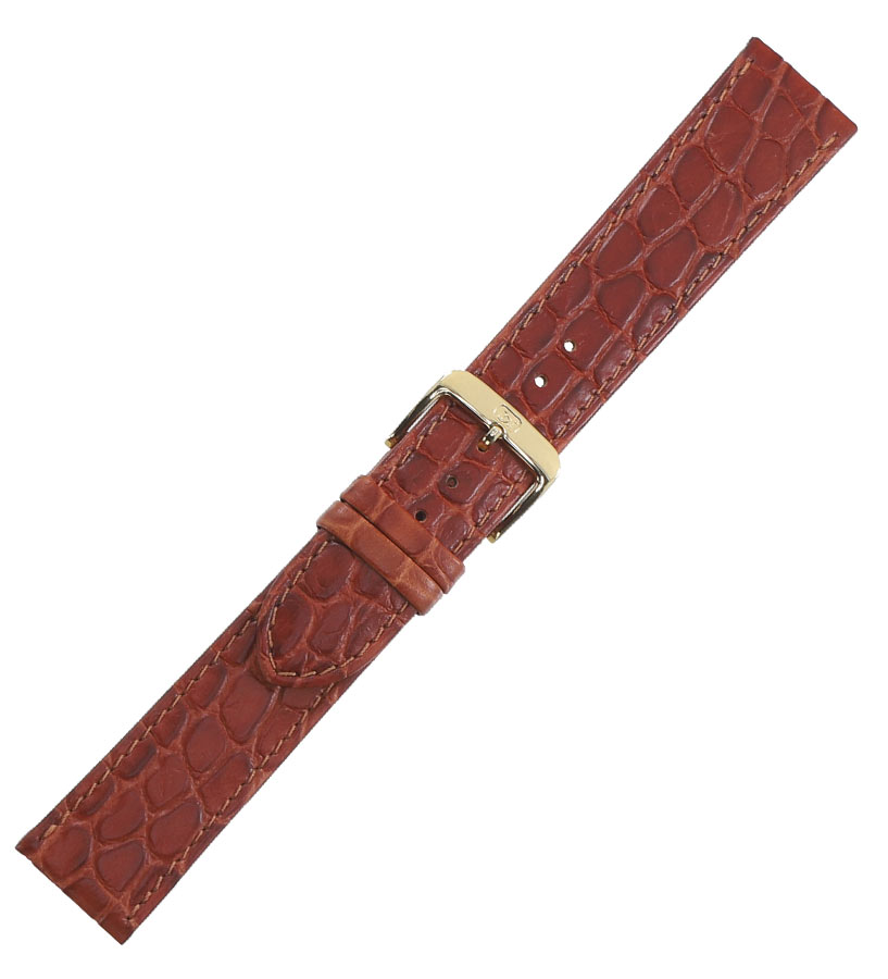 Di-Modell Tiffany klasyczny pasek do zegarka w kolorze złotobrązowym. Elegancki ręcznie wykonany ze skóry naturalnej o wzorze krokodyla wykończony w półmacie. Cienka konstrukcja sprawia, że idealnie komponuje się z klasycznymi zegarkami o cienkich kopertach. Luksusowy wzór i niesamowita lekkość paska zapewnia komfort noszenia.