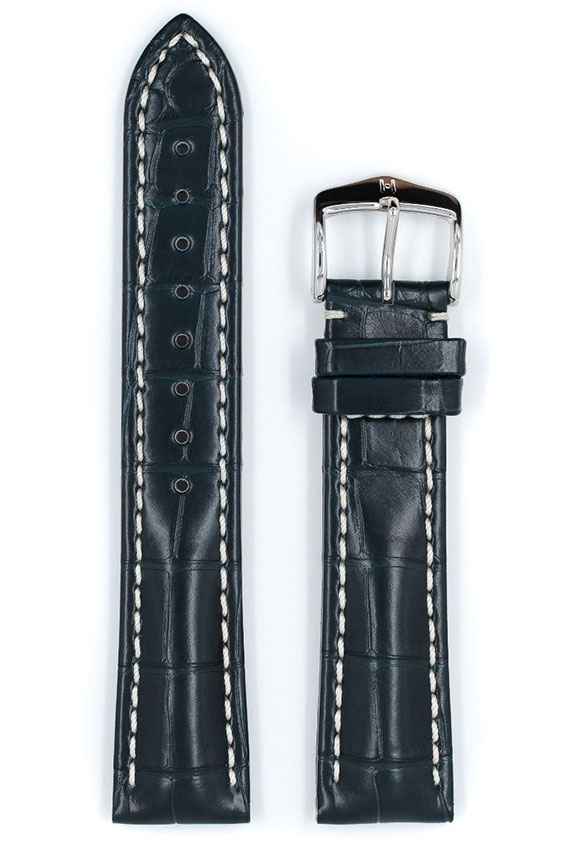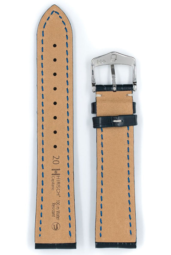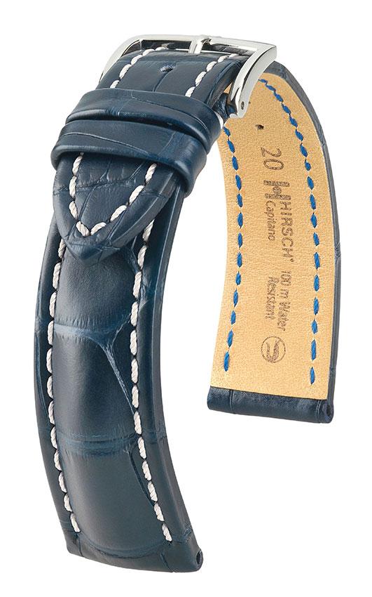 Ekskluzywny pasek do zegarka wykonany ze skóry aligatora w wersji półmatowej Hirsch Capitano kolor niebieski. Elegancki i sportowy zarazem. Kształt paska zapewnia silny i atletyczny charakter, który idealnie będzie nadawał się do masywnych, sportowych zegarków. Idealny towarzysz dla obszernych zegarków. Wykonany z najwyższej jakości skóry aligatora luizjańskiego dodaje namacalnej siły.