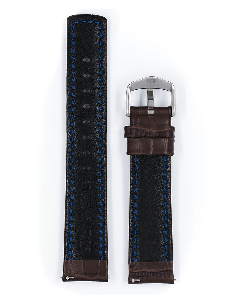 Pasek do zegarka, Hirsch Grand Duke brązowy. Sportowy pasek z wodoodpornej, najlepszej włoskiej skóry cielęcej o idealnie odwzorowanej strukturze skóry aligatora. Elastyczna, miękka, zaawansowana technologicznie skóra podszewkowa i szeroka klamerka o wspaniałym kształcie podkreślają wyrazisty design tego sportowego paska. Grand Duke pasuje idealnie do dużych, masywnych zegarków, a specjalne teleskopy umożliwiają zakładanie i ściąganie paska bez pomocy zegarmistrza. Pasek dostępny jest w rozmiarze 18 mm, 20 mm, 22 mm oraz 24 mm.