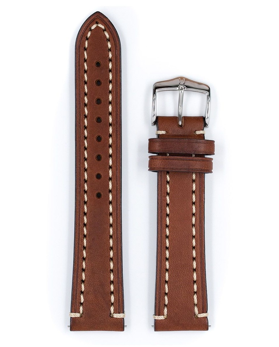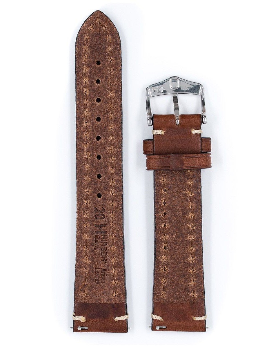 Pasek do zegarka, Hirsch Liberty kolor brązowy. Wysokiej jakości, mocny pasek wytwarzany zgodnie z tradycją kaletnictwa z jednego kawałka skóry i poddawany obróbce z użyciem wyłącznie naturalnych roślinnych barwników. Z czasem, pod wpływem działania czynników zewnętrznych takich jak słońce, wiatr i woda na pasku może pojawić się naturalna patyna, nadając mu indywidualny charakter. Hirsch Liberty idealnie komponuje się z masywnymi, sportowymi zegarkami.