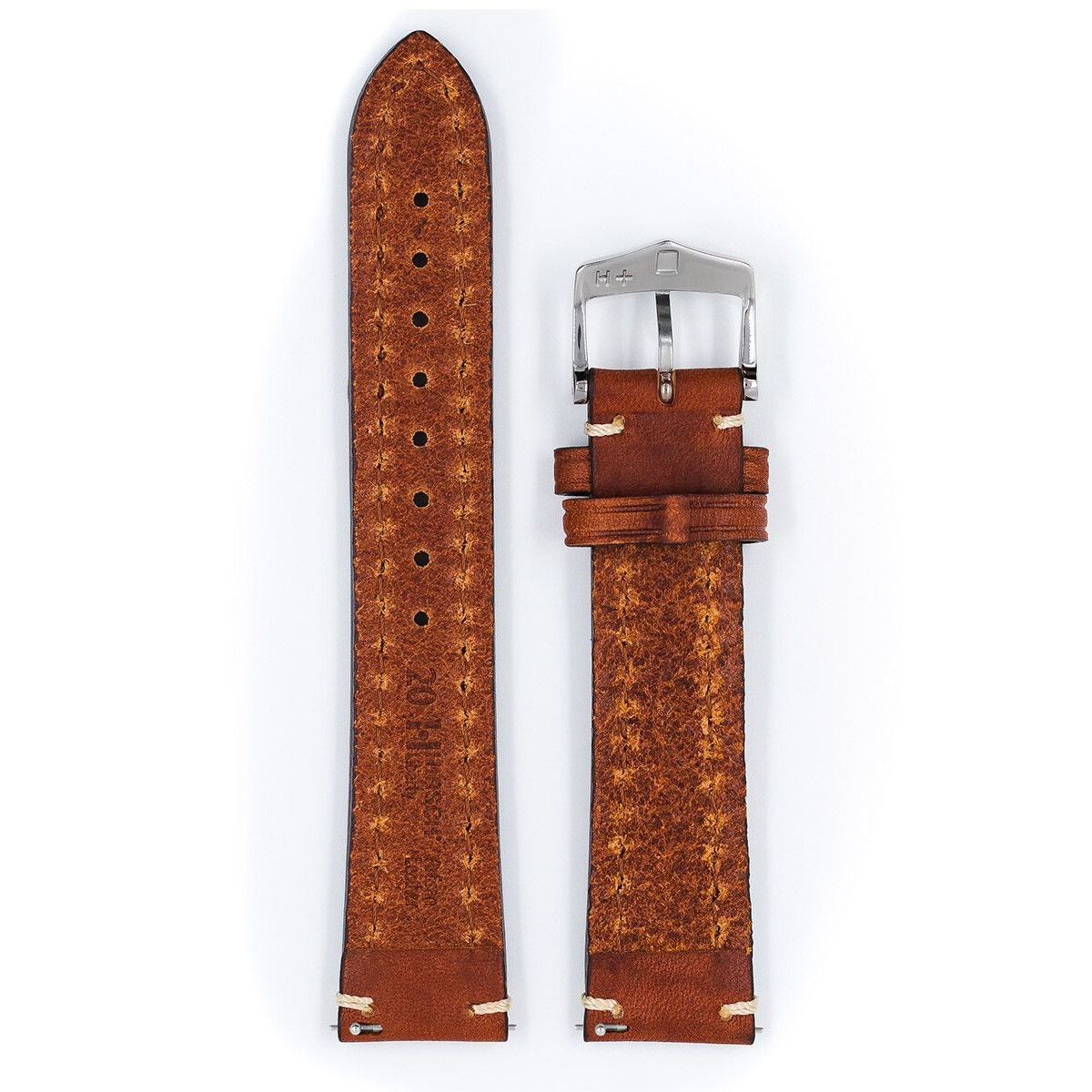 Pasek do zegarka, Hirsch Liberty kolor złotobrązowy. Wysokiej jakości, mocny pasek wytwarzany zgodnie z tradycją kaletnictwa z jednego kawałka skóry i poddawany obróbce z użyciem wyłącznie naturalnych roślinnych barwników. Z czasem, pod wpływem działania czynników zewnętrznych takich jak słońce, wiatr i woda na pasku może pojawić się naturalna patyna, nadając mu indywidualny charakter. Hirsch Liberty idealnie komponuje się z masywnymi, sportowymi zegarkami.