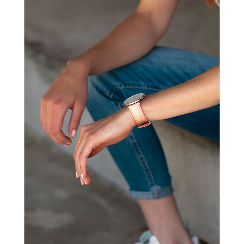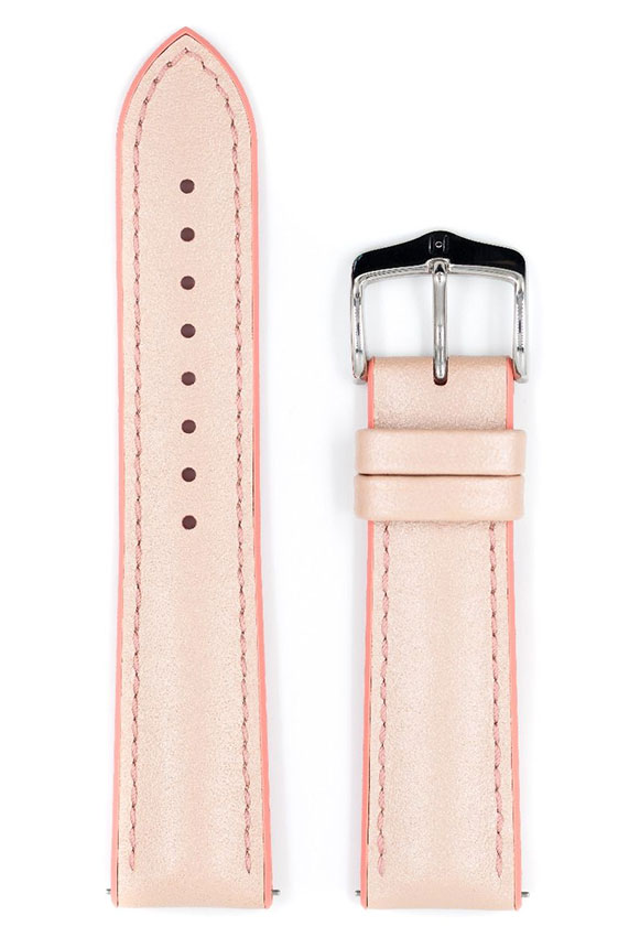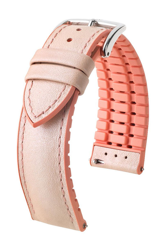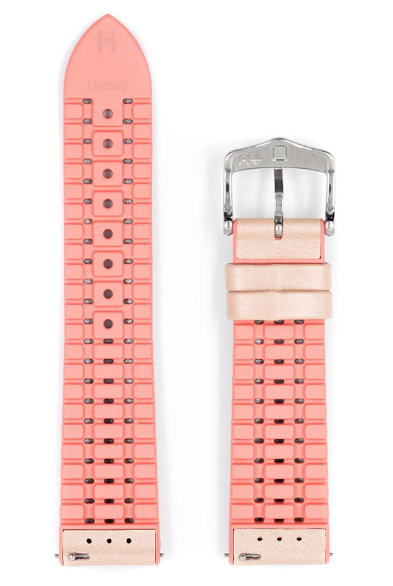 Pasek do zegarka Hirsch Lindsey — gdy sport spotyka się z modą. Lindsey jest kobiecym wcieleniem kolekcji bardzo wytrzymałych i niesamowicie wygodnych pasków z linii Hirsch Performance. Czy to w sporcie, czy w życiu codziennym: sportowo-funkcjonalne połączenie skóry i kauczuku Hirsch Premium gwarantuje doskonałe właściwości użytkowe. Zewnętrzna część skórzana jest w kolorze beżowym, a spód wykonany z najwyższej jakości kauczuku w różowym odcieniu. Hirsch Lindsey został wyposażony w teleskopy umożliwiające zamocowanie do koperty zegarka bez użycia narzędzi.